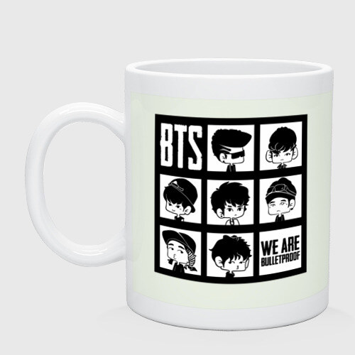 Кружка изготовлена из высококачественной белой керамики. Есть вариант с фосфорным покрытием, за счет которого кружка будет светиться в темноте. Принт наносится на бока кружки: два изображения или только с одной стороны. Можно сделать со своим дизайном.