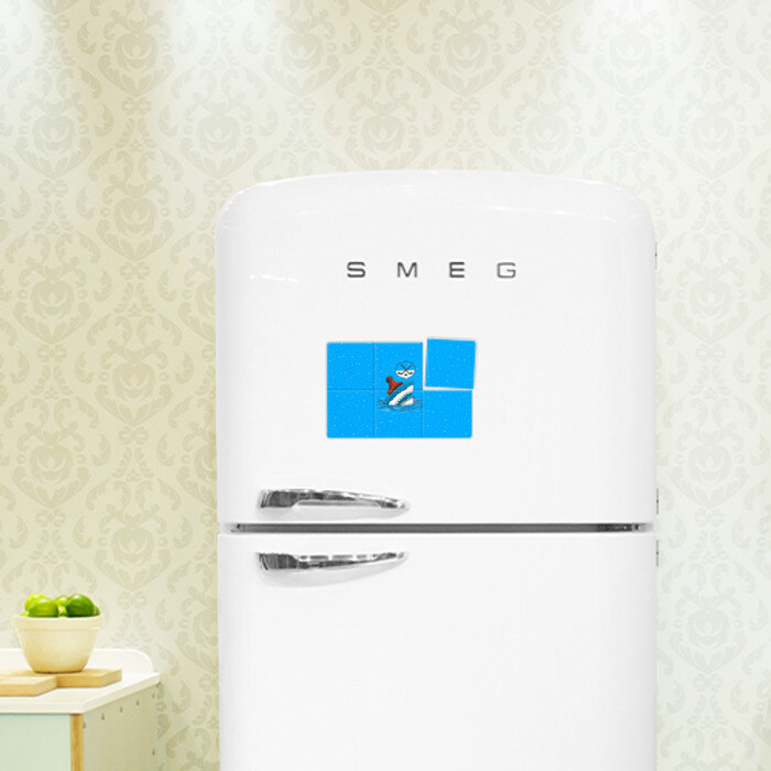Магнитные плакаты отлично держатся на металлических поверхностях, например холодильниках, и станут необычным украшением интерьера. Плакат собирается из девяти составных частей, угловые магниты имеют аккуратные закруглённые углы. Изображение наносится методом сублимации.