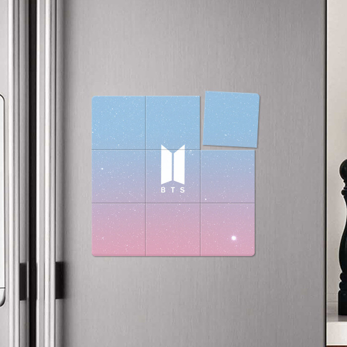 Магнитные плакаты отлично держатся на металлических поверхностях, например холодильниках, и станут необычным украшением интерьера. Плакат собирается из девяти составных частей, угловые магниты имеют аккуратные закруглённые углы. Изображение наносится методом сублимации.