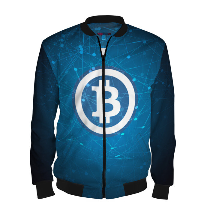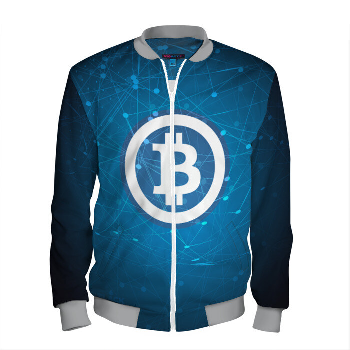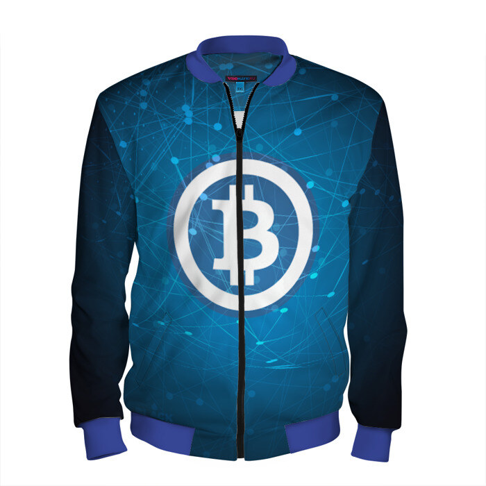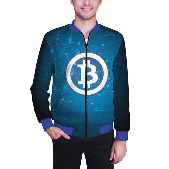 Мужской бомбер 3D Bitcoin Blue - Биткоин