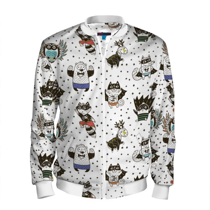 Бомбер — это короткая куртка на молнии, с эластичными вставками-резинками и манжетами. Удобный трендовый аксессуар, сшитый из гладкой матовой синтетической ткани, на всей поверхности которой наносится принт. Благодаря принту такой бомбер может стать не просто стильной “кофтой”, а цветовым акцентом вашего гардероба.