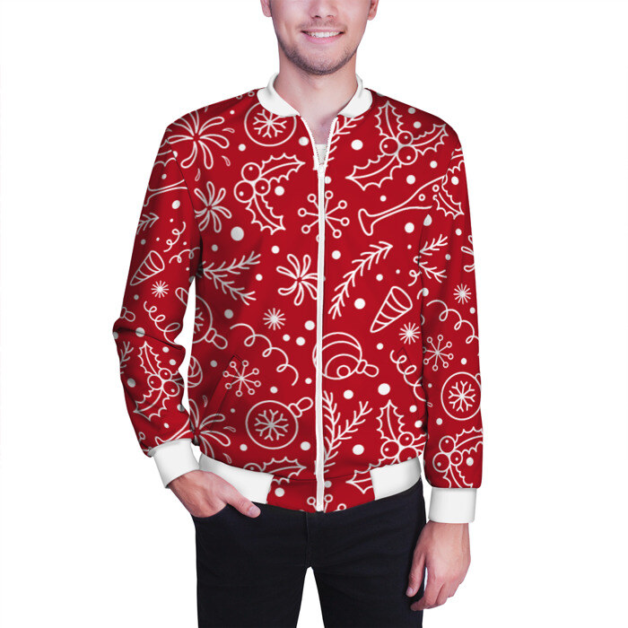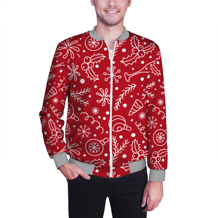 Мужской бомбер 3D с принтом Новогоднее настроение