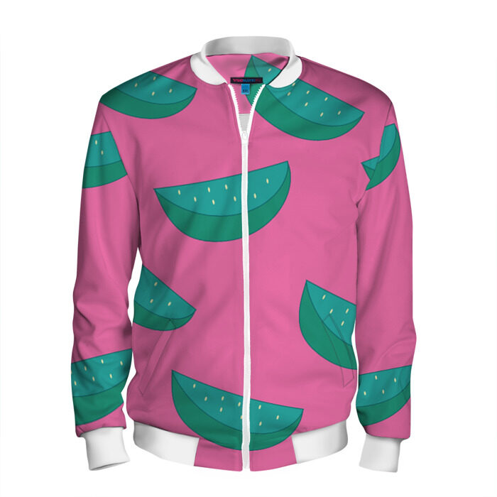 Мужской бомбер 3D с принтом Арбузы на розовом