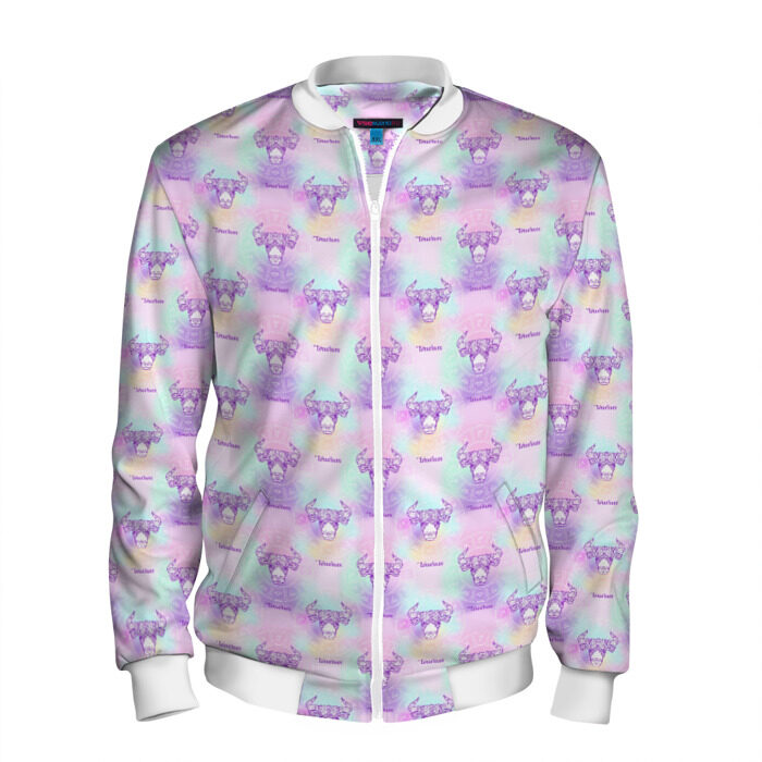 Бомбер — это короткая куртка на молнии, с эластичными вставками-резинками и манжетами. Удобный трендовый аксессуар, сшитый из гладкой матовой синтетической ткани, на всей поверхности которой наносится принт. Благодаря принту такой бомбер может стать не просто стильной “кофтой”, а цветовым акцентом вашего гардероба.
