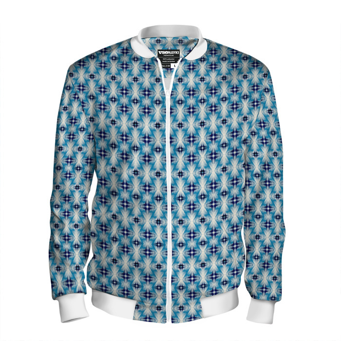 Мужской бомбер 3D Сине белый геометрический икат узор