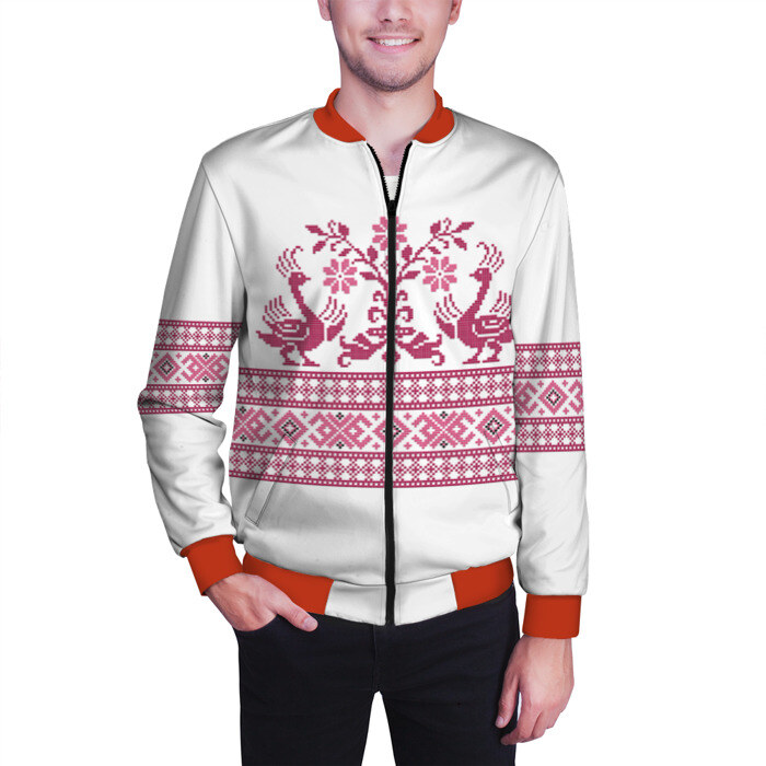 Бомбер — это короткая куртка на молнии, с эластичными вставками-резинками и манжетами. Удобный трендовый аксессуар, сшитый из гладкой матовой синтетической ткани, на всей поверхности которой наносится принт. Благодаря принту такой бомбер может стать не просто стильной “кофтой”, а цветовым акцентом вашего гардероба.