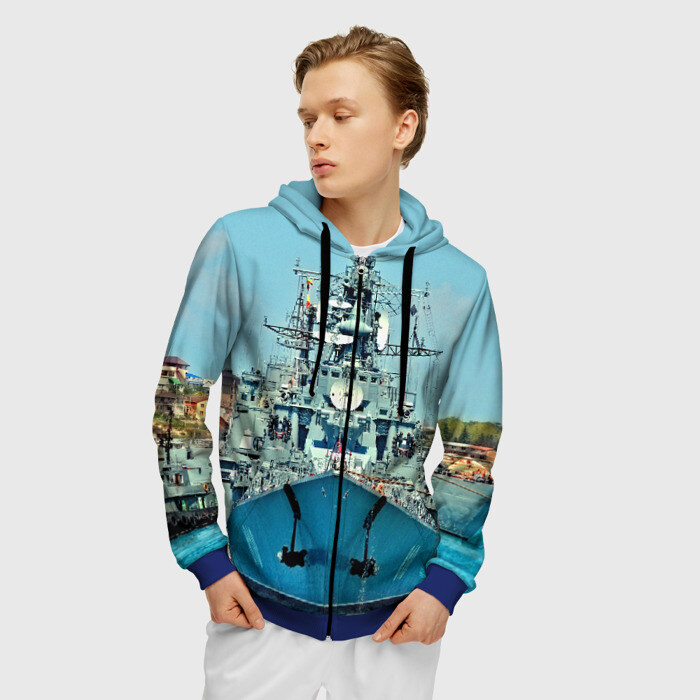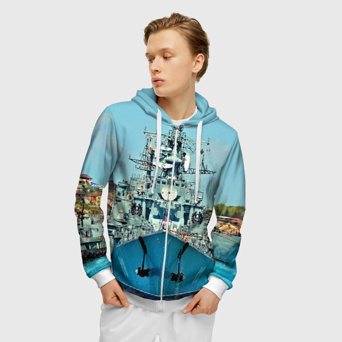 Мужская толстовка 3D на молнии с принтом Сторожевой корабль