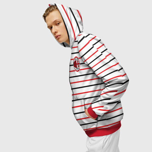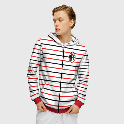 Мужская толстовка 3D на молнии AC Milan - Stripe white