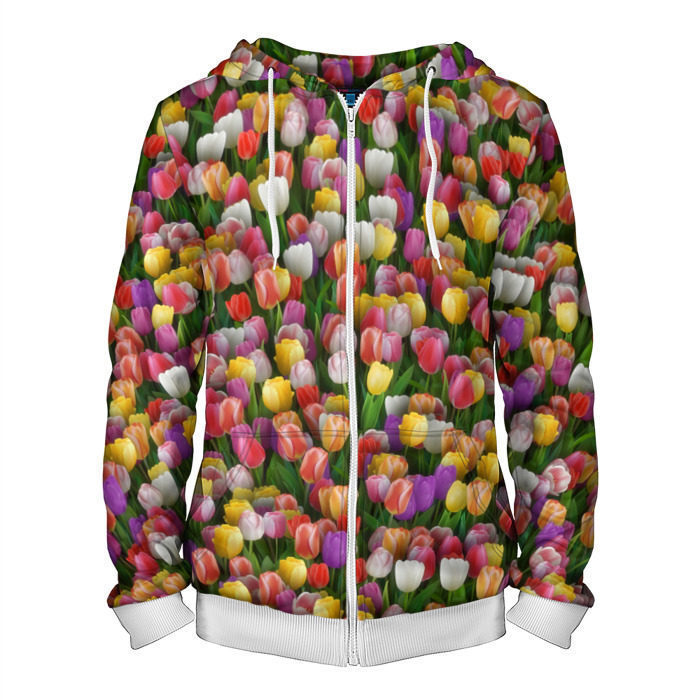 Мужская толстовка 3D на молнии с принтом Разноцветные тюльпаны