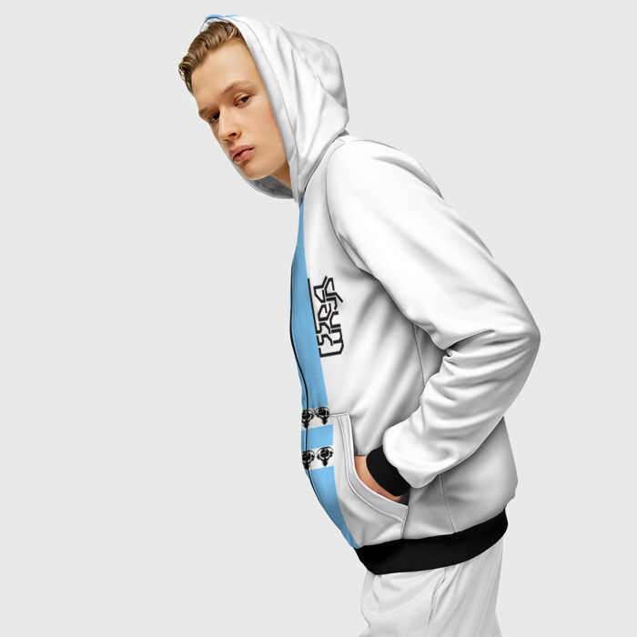 Толстовка прямого кроя с капюшоном и молнией спереди, по бокам два вместительных кармана без застежек. Сшита из гладкой синтетической ткани, благодаря свойствам которой принт наносится по всей поверхности изделия и имеет яркие цвета. Внутренний слой — мягкий и приятный на ощупь. Можно заказать со своим дизайном.