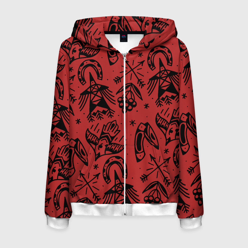 Толстовка прямого кроя с капюшоном и молнией спереди, по бокам два вместительных кармана без застежек. Сшита из гладкой синтетической ткани, благодаря свойствам которой принт наносится по всей поверхности изделия и имеет яркие цвета. Внутренний слой — мягкий и приятный на ощупь. Можно заказать со своим дизайном.