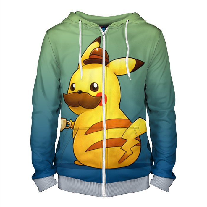 Мужская толстовка 3D на молнии Детектив Пикачу
