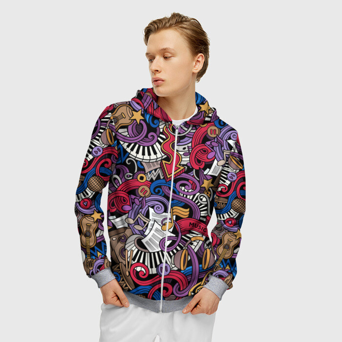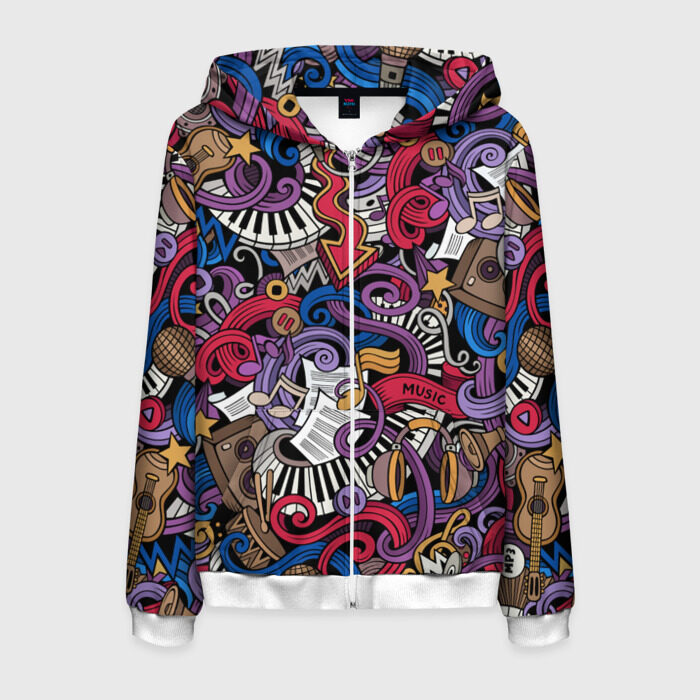 Толстовка прямого кроя с капюшоном и молнией спереди, по бокам два вместительных кармана без застежек. Сшита из гладкой синтетической ткани, благодаря свойствам которой принт наносится по всей поверхности изделия и имеет яркие цвета. Внутренний слой — мягкий и приятный на ощупь. Можно заказать со своим дизайном.