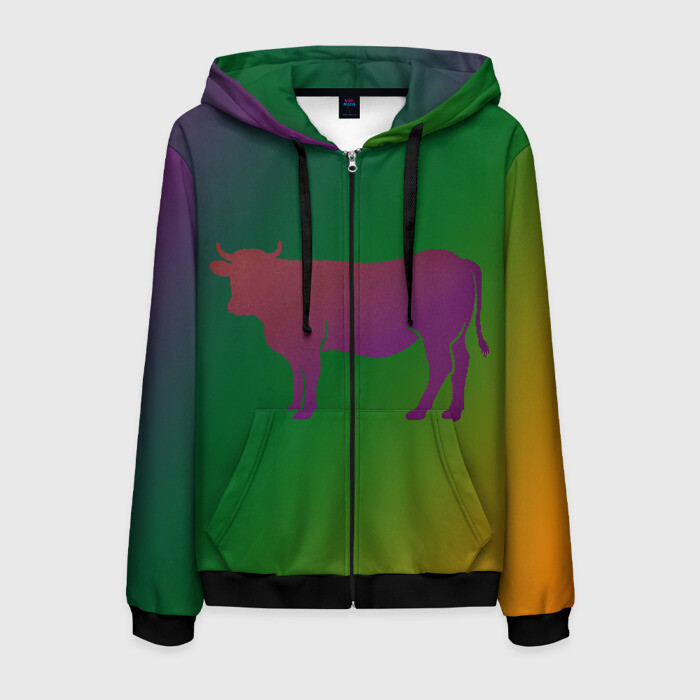 Мужская толстовка 3D на молнии Корова(трехцветный градиент)