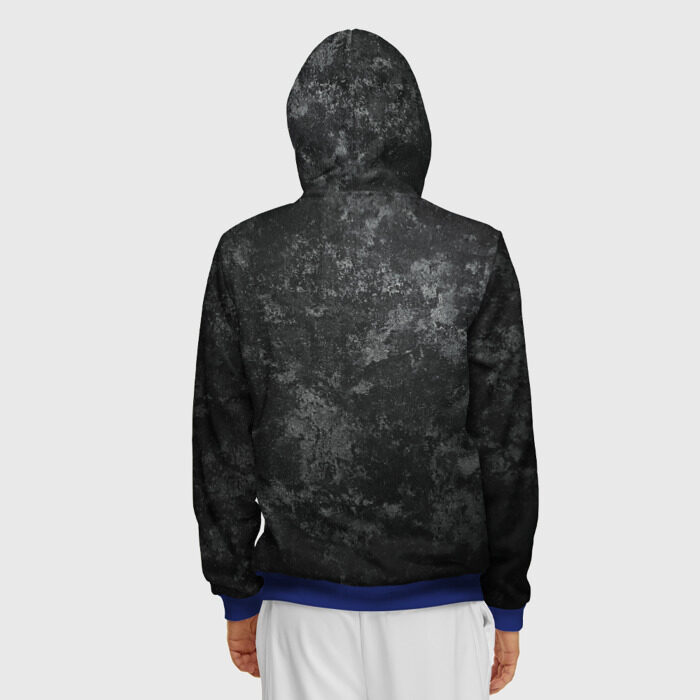 Толстовка прямого кроя с капюшоном и молнией спереди, по бокам два вместительных кармана без застежек. Сшита из гладкой синтетической ткани, благодаря свойствам которой принт наносится по всей поверхности изделия и имеет яркие цвета. Внутренний слой — мягкий и приятный на ощупь. Можно заказать со своим дизайном.