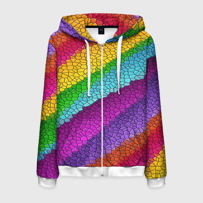 Мужская толстовка 3D на молнии Яркая мозаика радуга диагональ