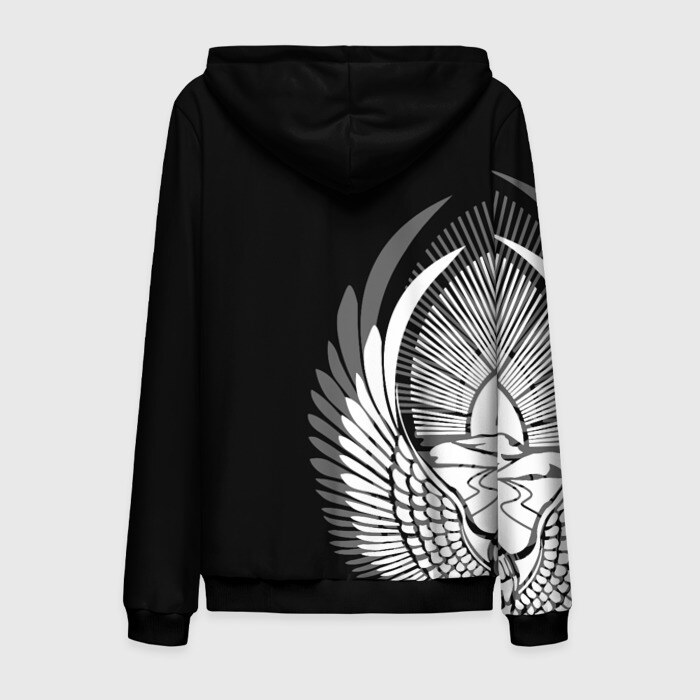 Толстовка прямого кроя с капюшоном и молнией спереди, по бокам два вместительных кармана без застежек. Сшита из гладкой синтетической ткани, благодаря свойствам которой принт наносится по всей поверхности изделия и имеет яркие цвета. Внутренний слой — мягкий и приятный на ощупь. Можно заказать со своим дизайном.