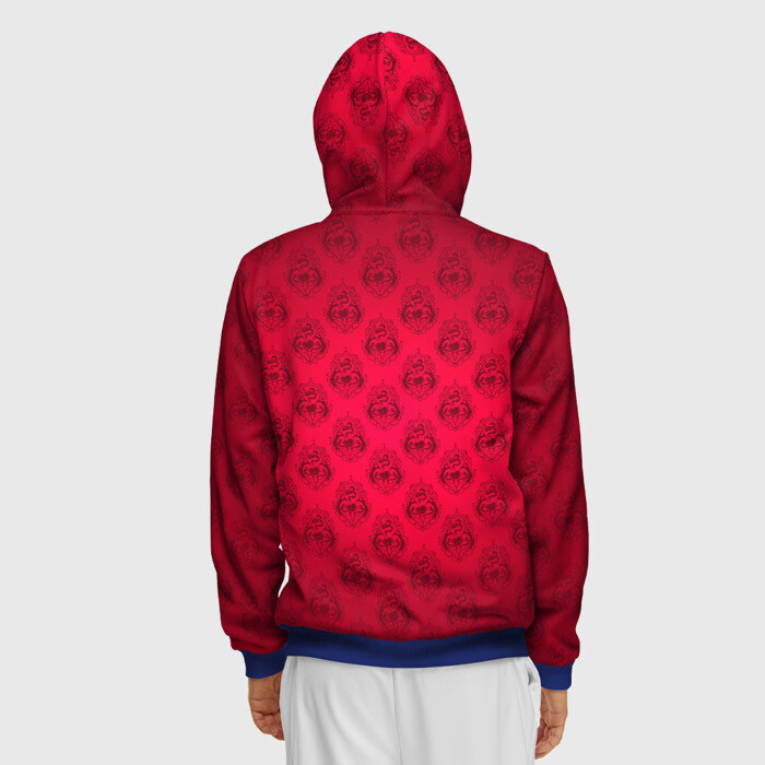 Толстовка прямого кроя с капюшоном и молнией спереди, по бокам два вместительных кармана без застежек. Сшита из гладкой синтетической ткани, благодаря свойствам которой принт наносится по всей поверхности изделия и имеет яркие цвета. Внутренний слой — мягкий и приятный на ощупь. Можно заказать со своим дизайном.
