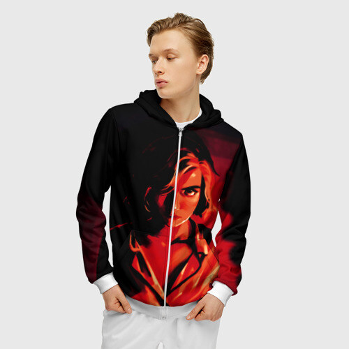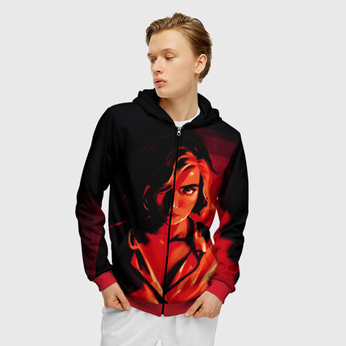 Толстовка прямого кроя с капюшоном и молнией спереди, по бокам два вместительных кармана без застежек. Сшита из гладкой синтетической ткани, благодаря свойствам которой принт наносится по всей поверхности изделия и имеет яркие цвета. Внутренний слой — мягкий и приятный на ощупь. Можно заказать со своим дизайном.