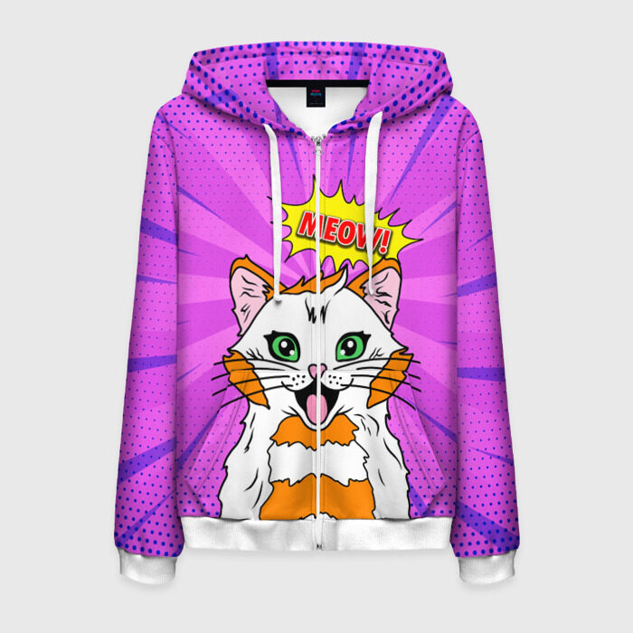 Мужская толстовка 3D на молнии с принтом Meow Pop Art Cat