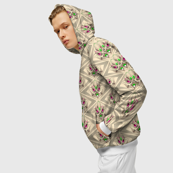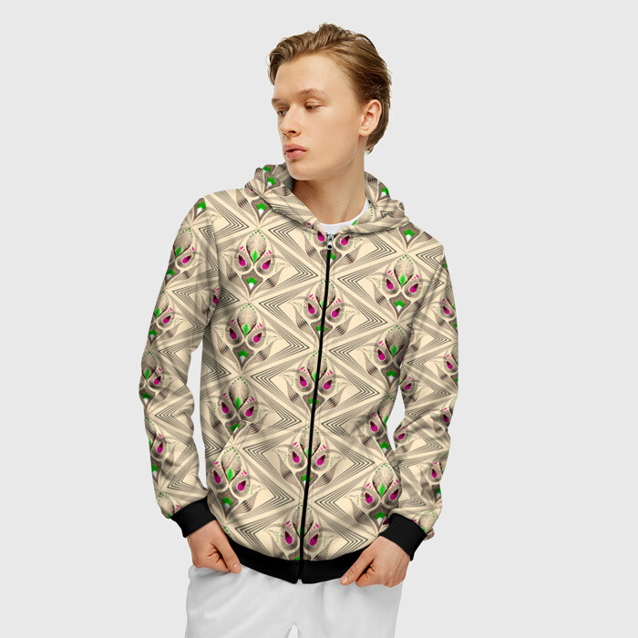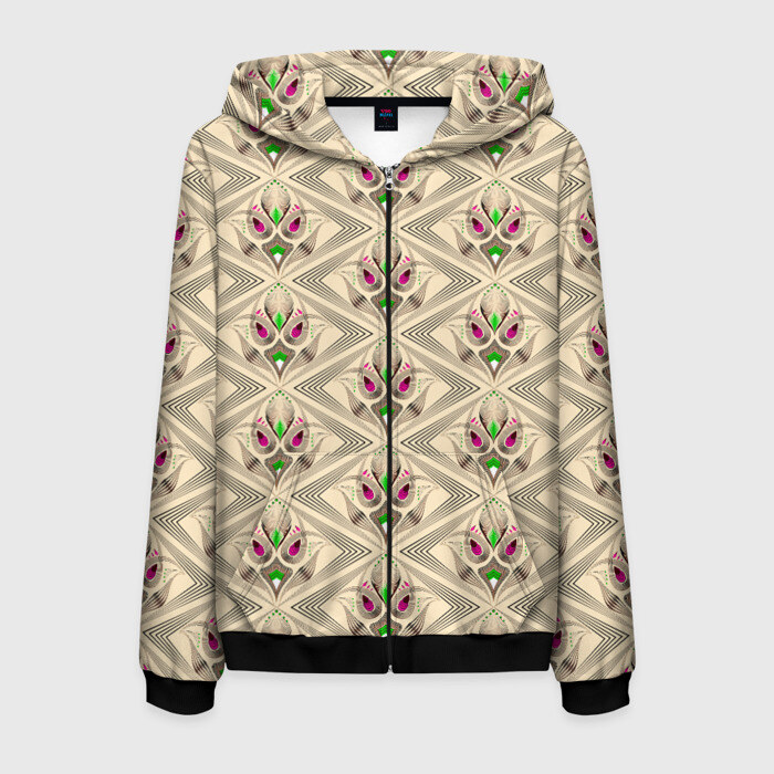 Мужская толстовка 3D на молнии Арт деко на бежевом фоне