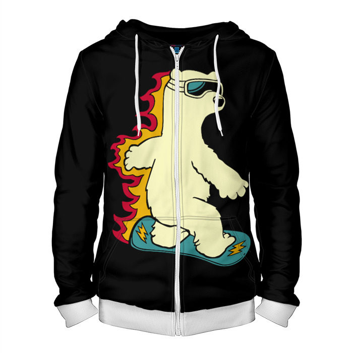 Мужская толстовка 3D на молнии с принтом Мишка на борде