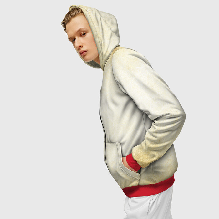 Толстовка прямого кроя с капюшоном и молнией спереди, по бокам два вместительных кармана без застежек. Сшита из гладкой синтетической ткани, благодаря свойствам которой принт наносится по всей поверхности изделия и имеет яркие цвета. Внутренний слой — мягкий и приятный на ощупь. Можно заказать со своим дизайном.