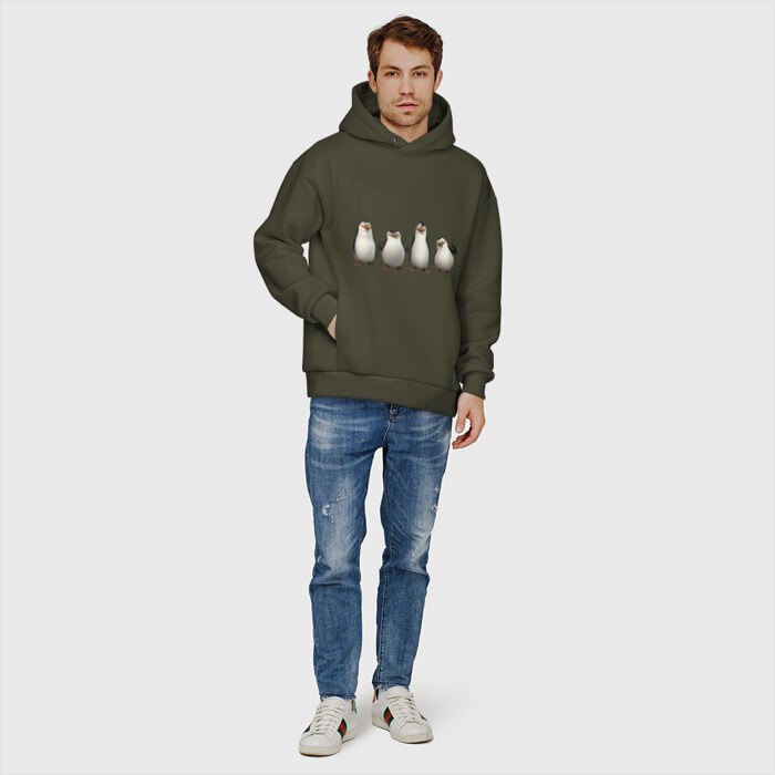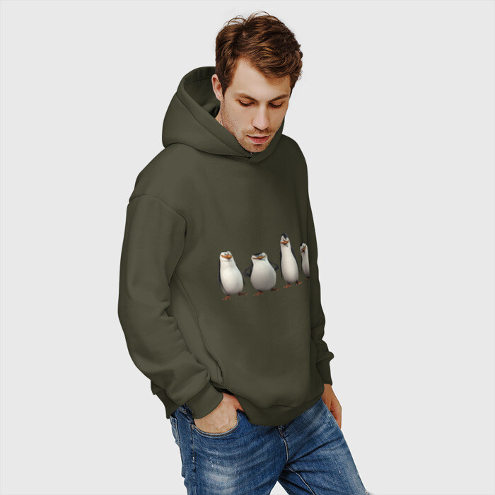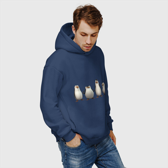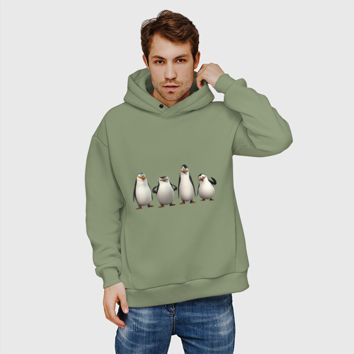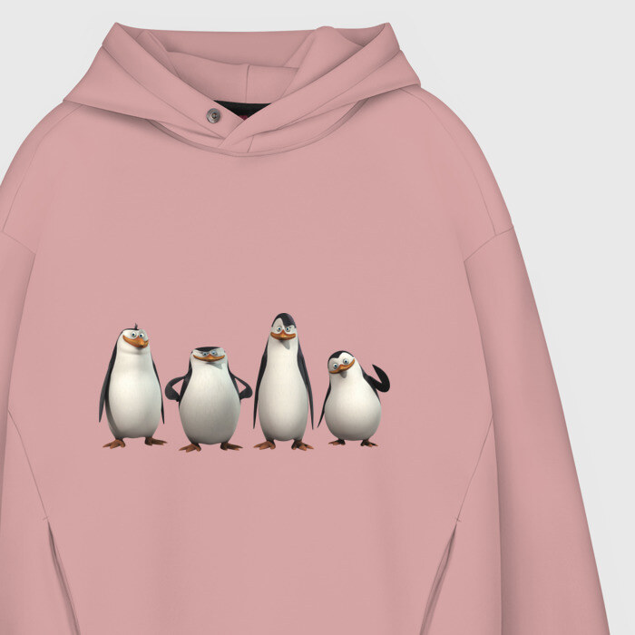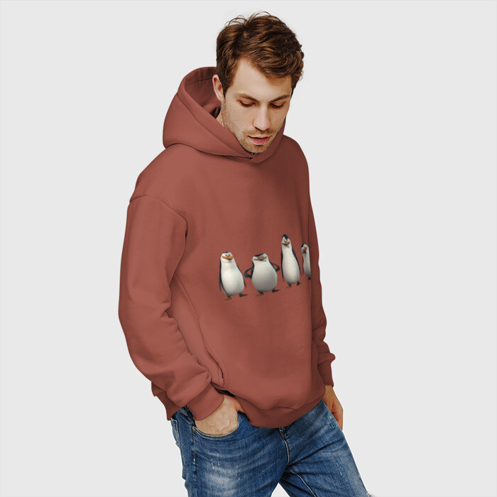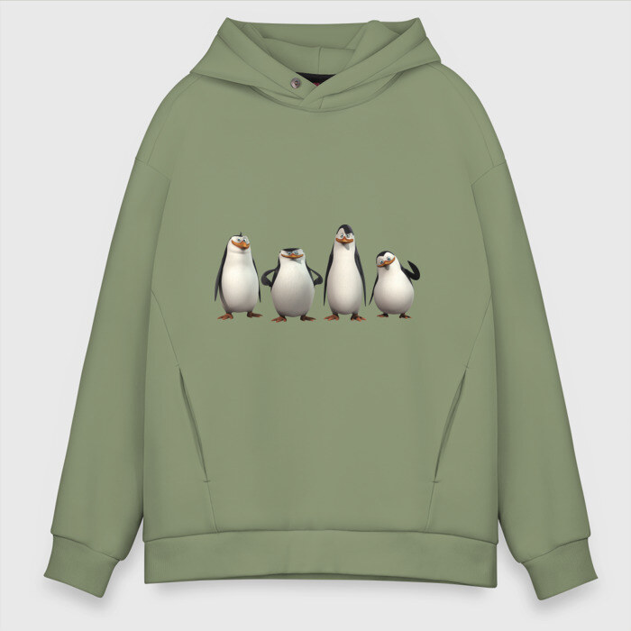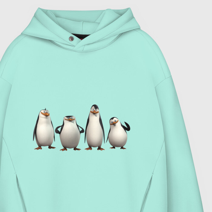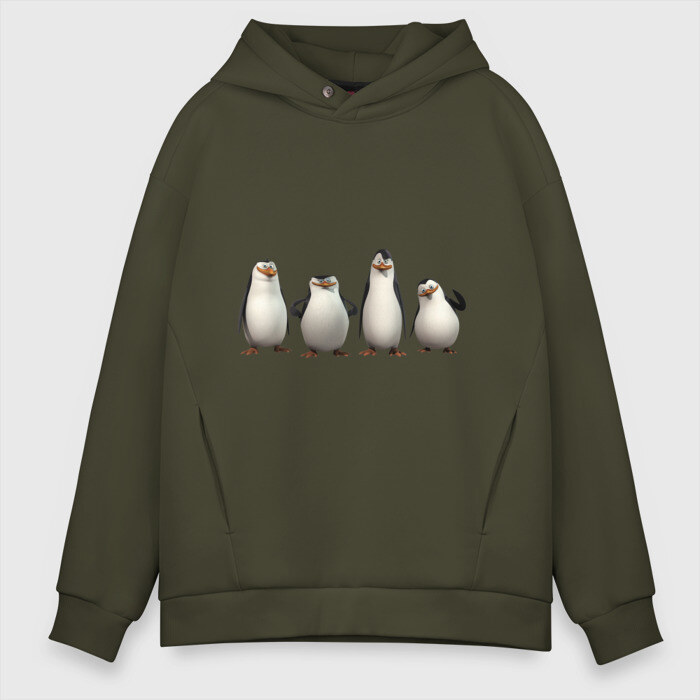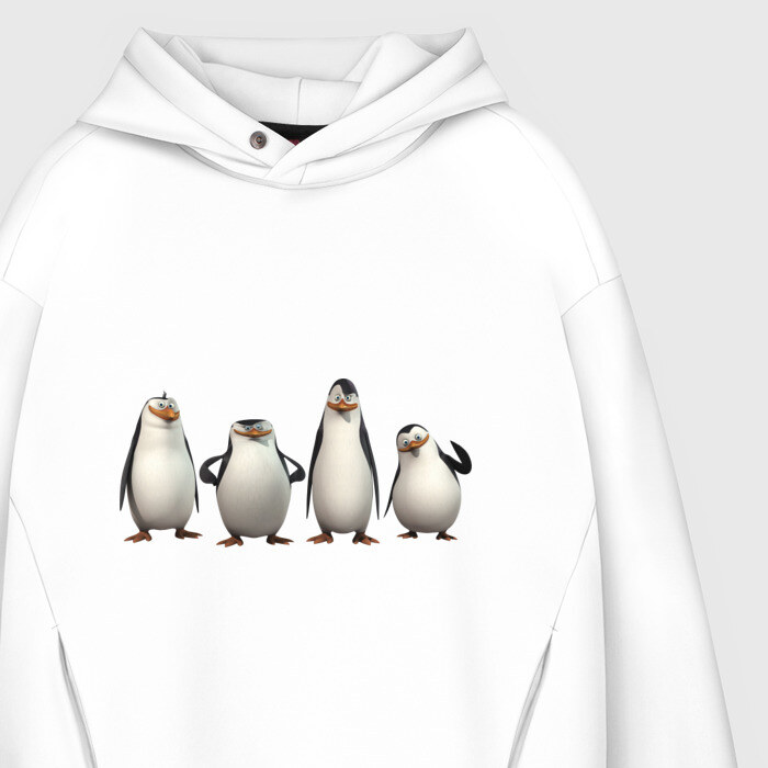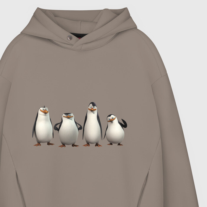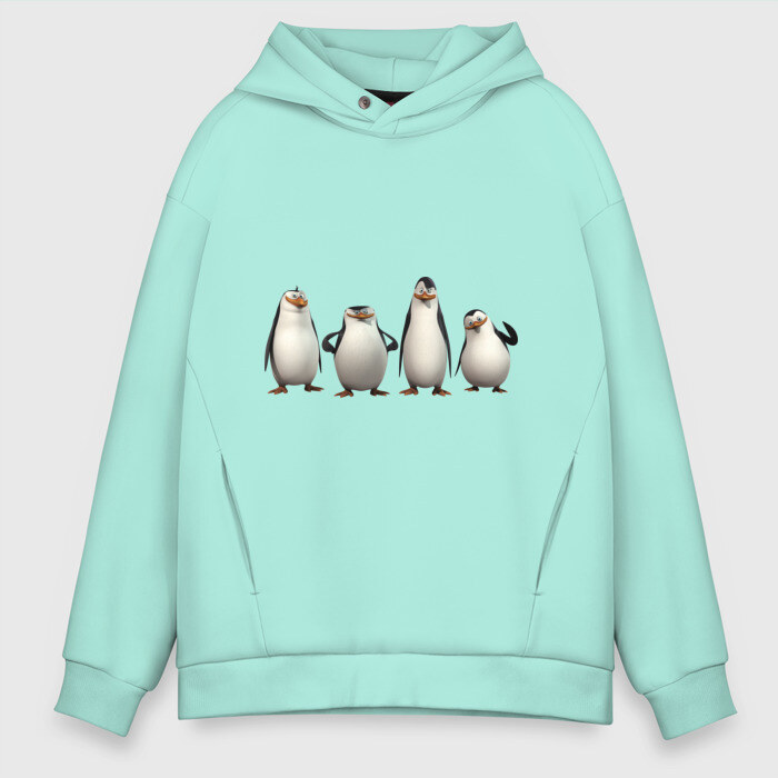 Мужское худи Oversize хлопок Пингвины Мадагаскар