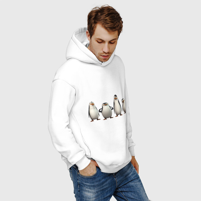 Мужское худи Oversize хлопок с принтом Пингвины Мадагаскар