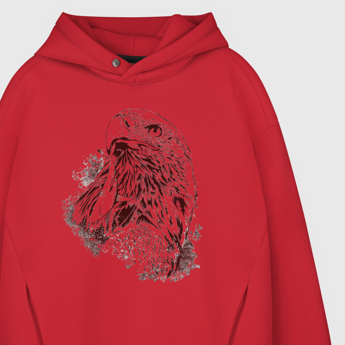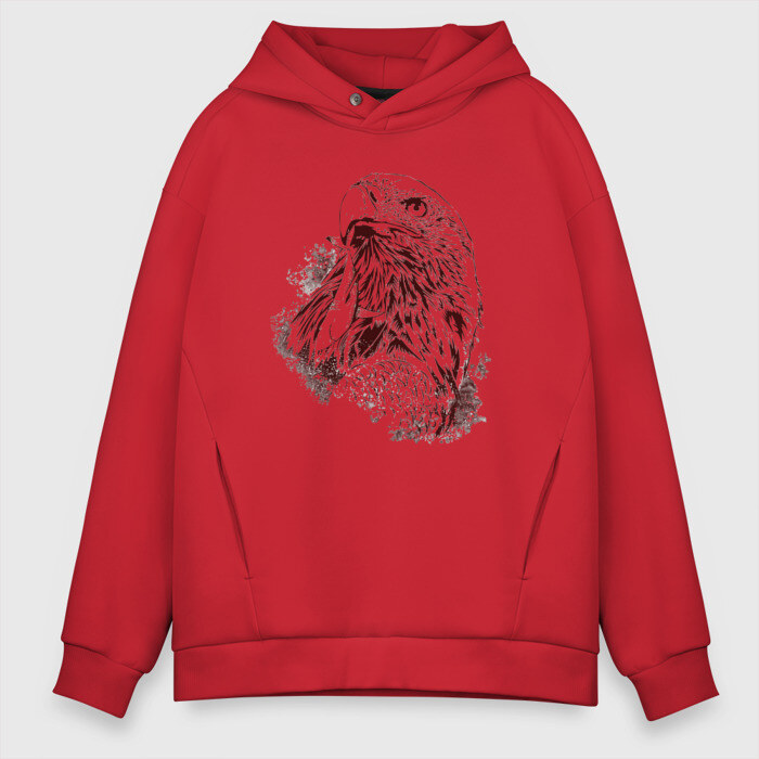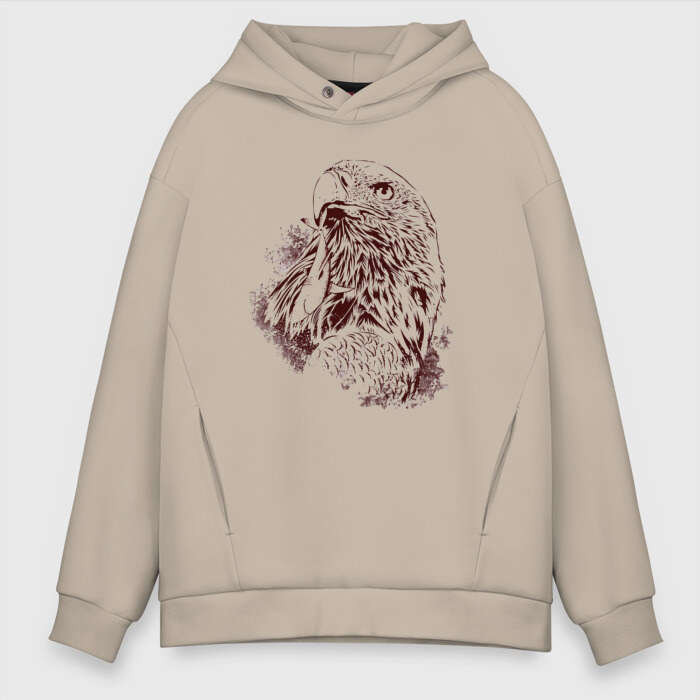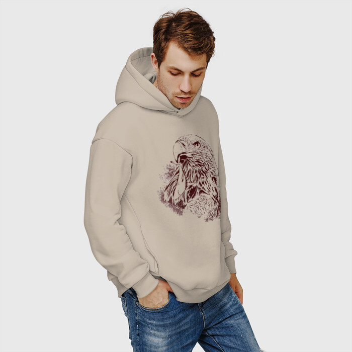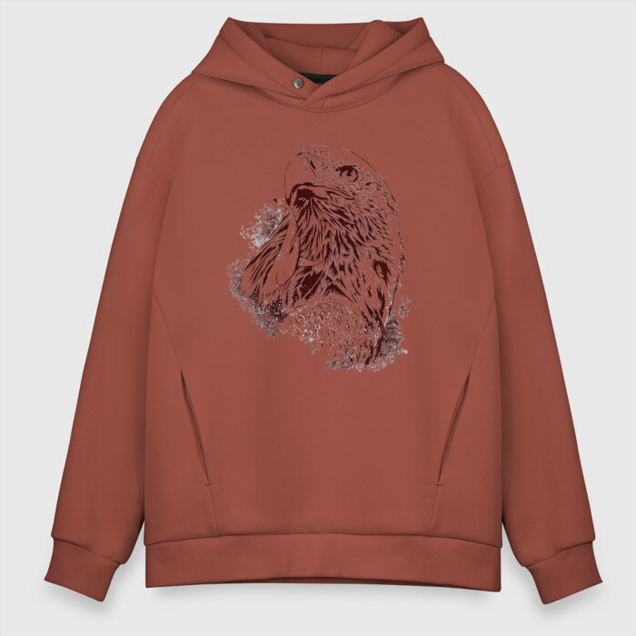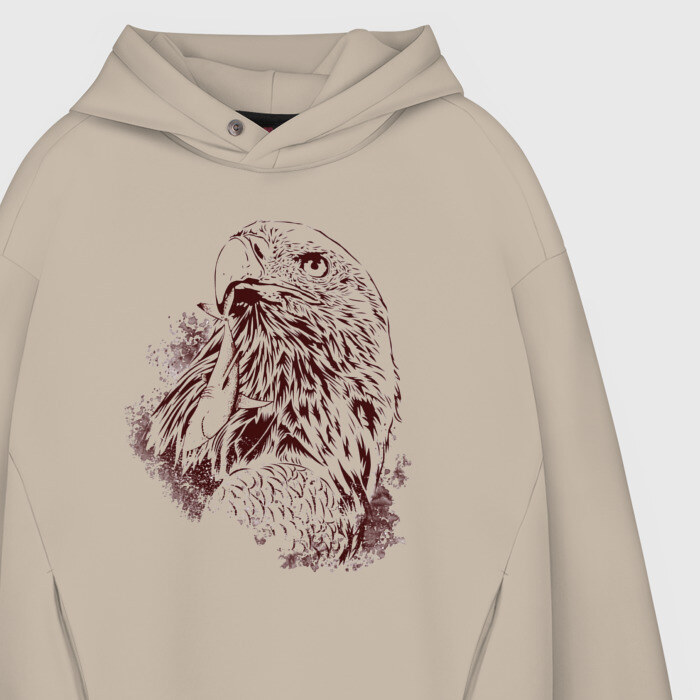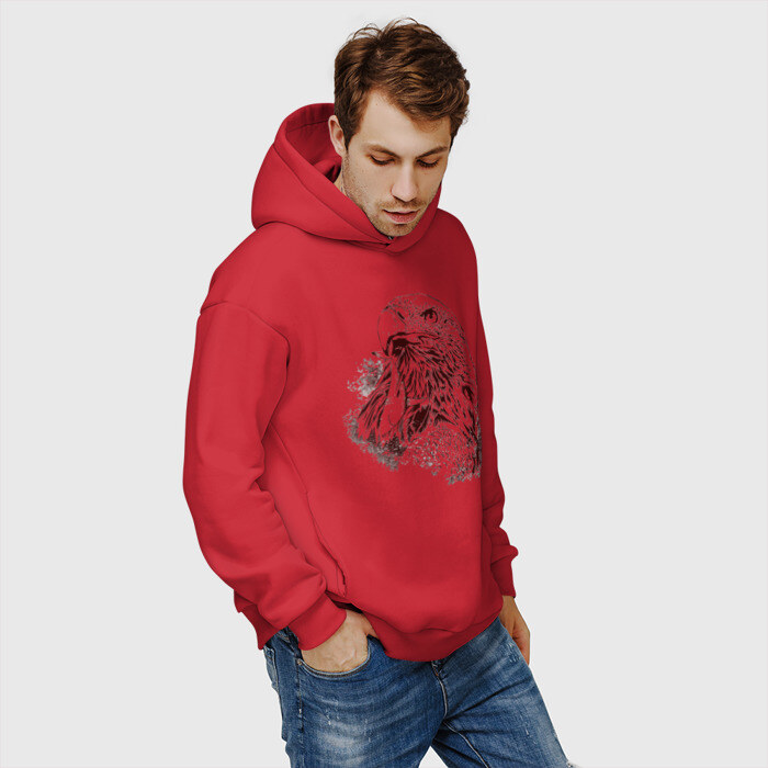 Мужское худи Oversize хлопок с принтом Ястреб