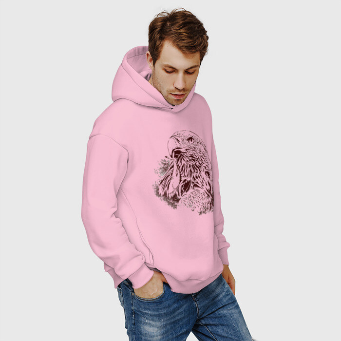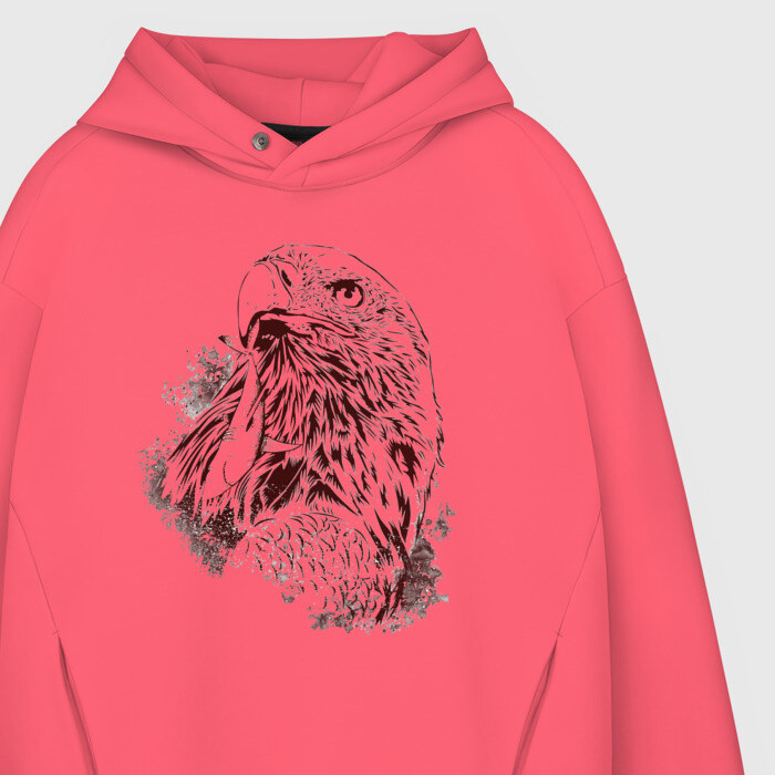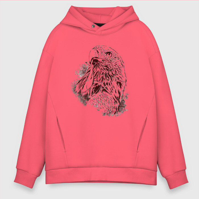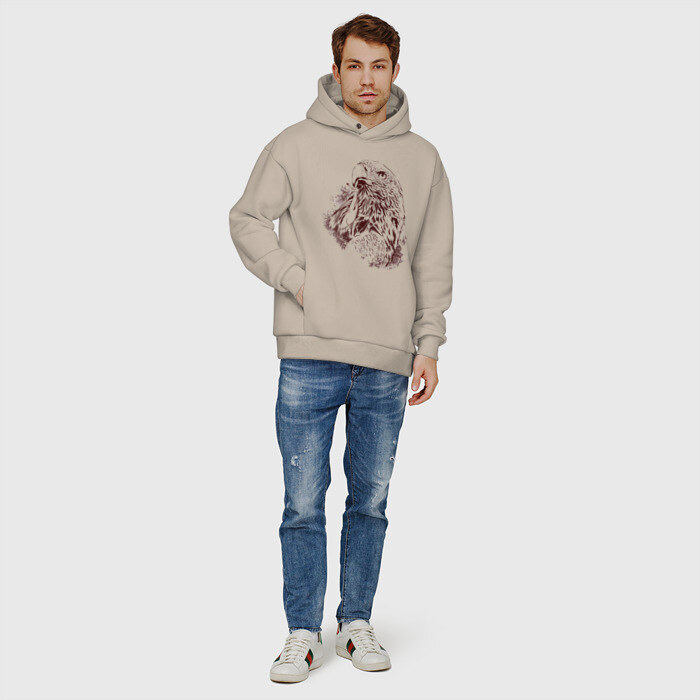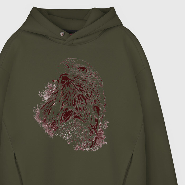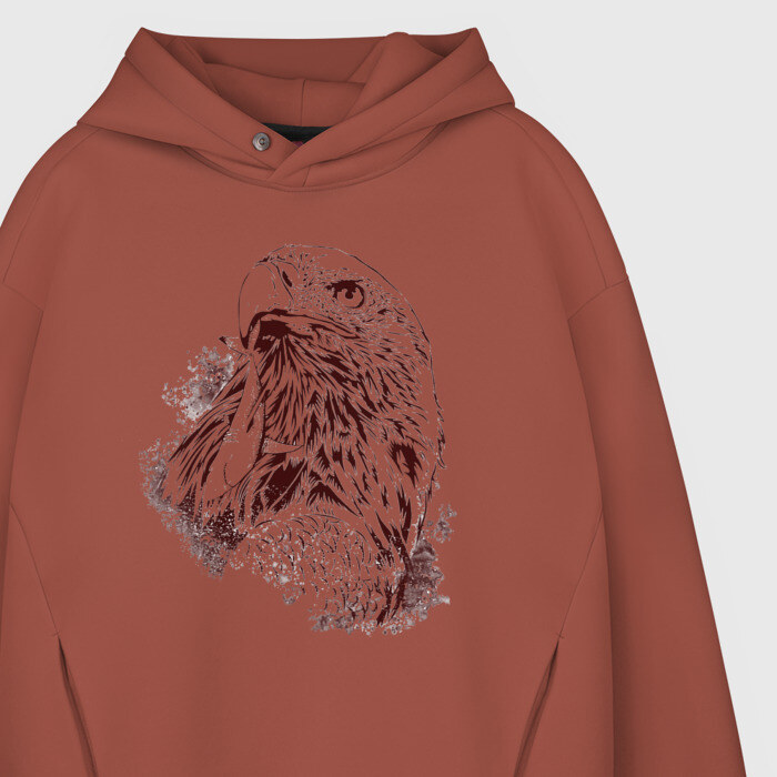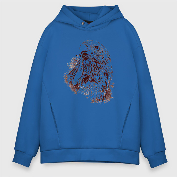 Мужское худи Oversize хлопок с принтом Ястреб