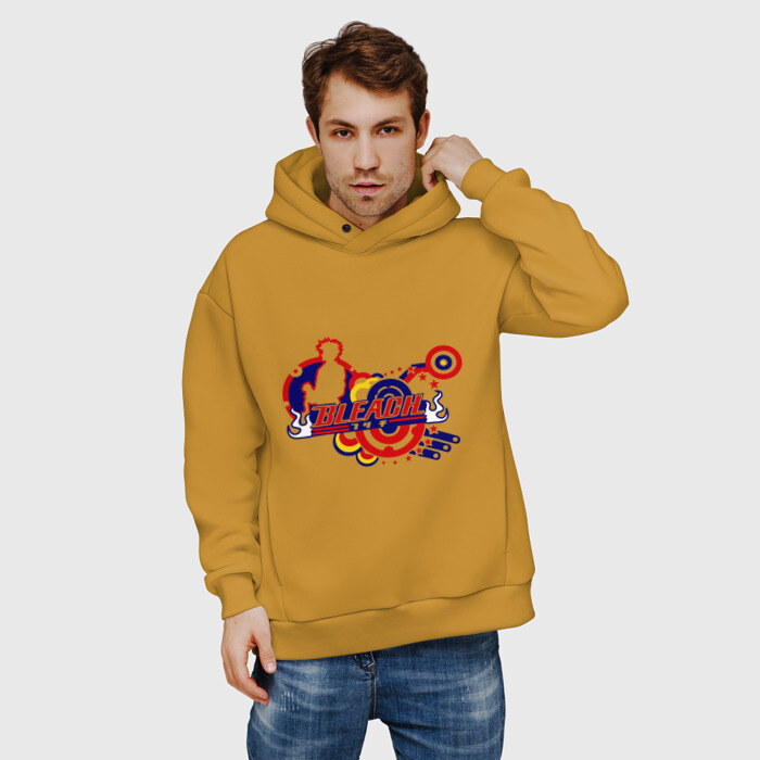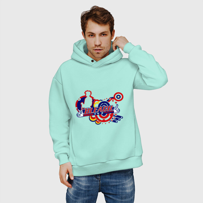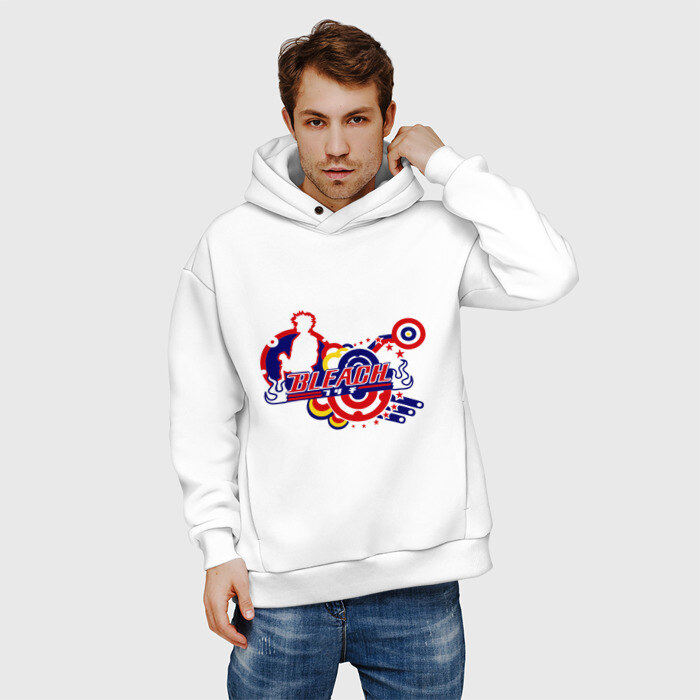 Мужское худи Oversize хлопок с принтом Bleach круги