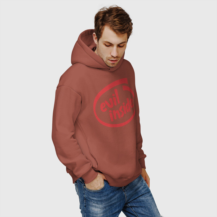 Мужское худи Oversize хлопок с принтом Evil Inside