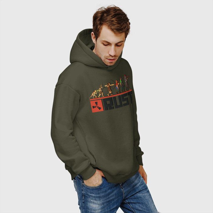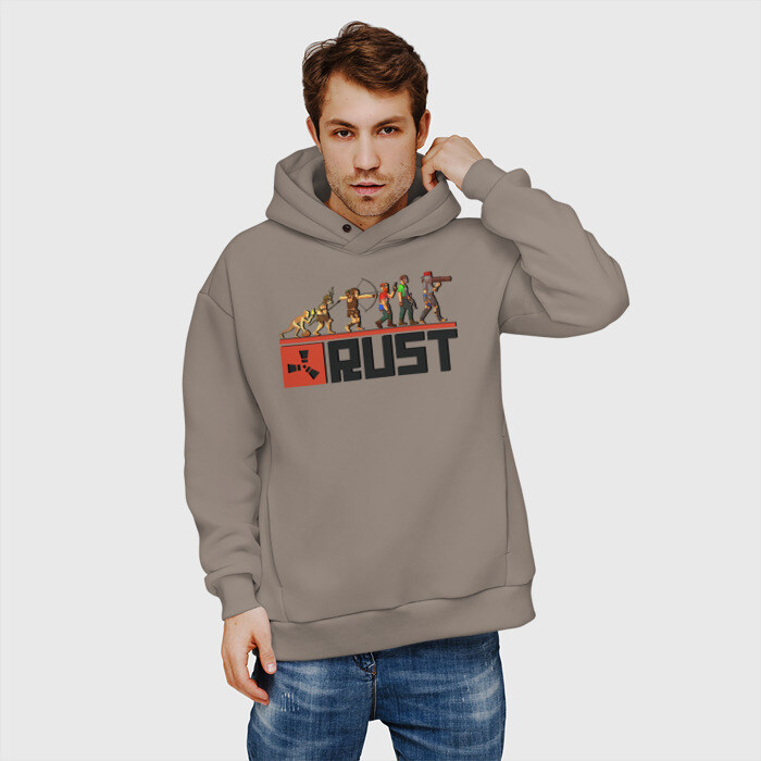 Мужское худи Oversize хлопок с принтом Evolution Rust
