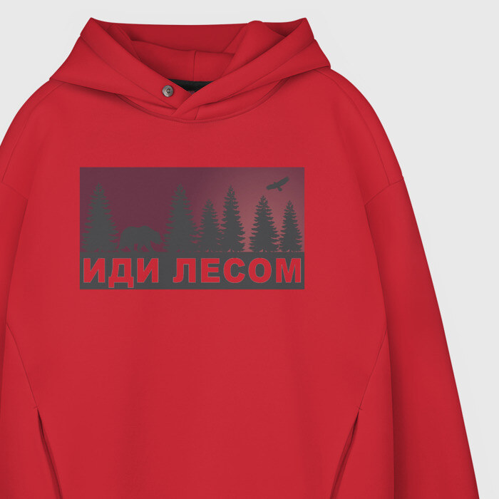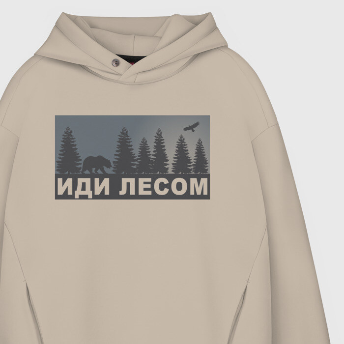 Мужское худи Oversize хлопок с принтом Иди лесом