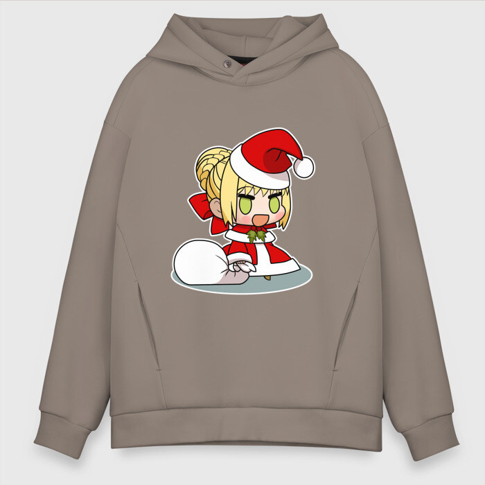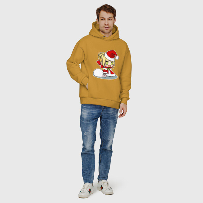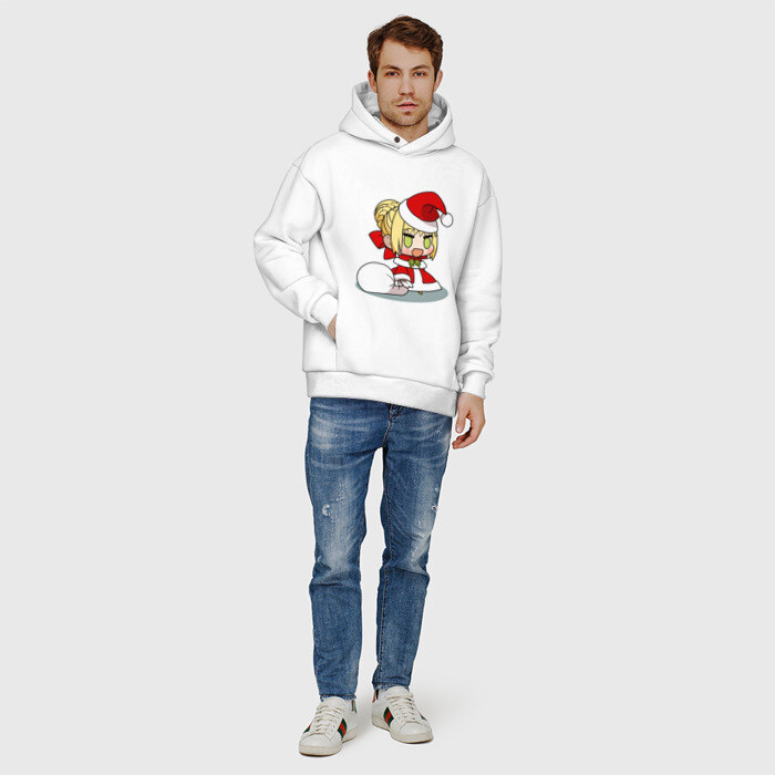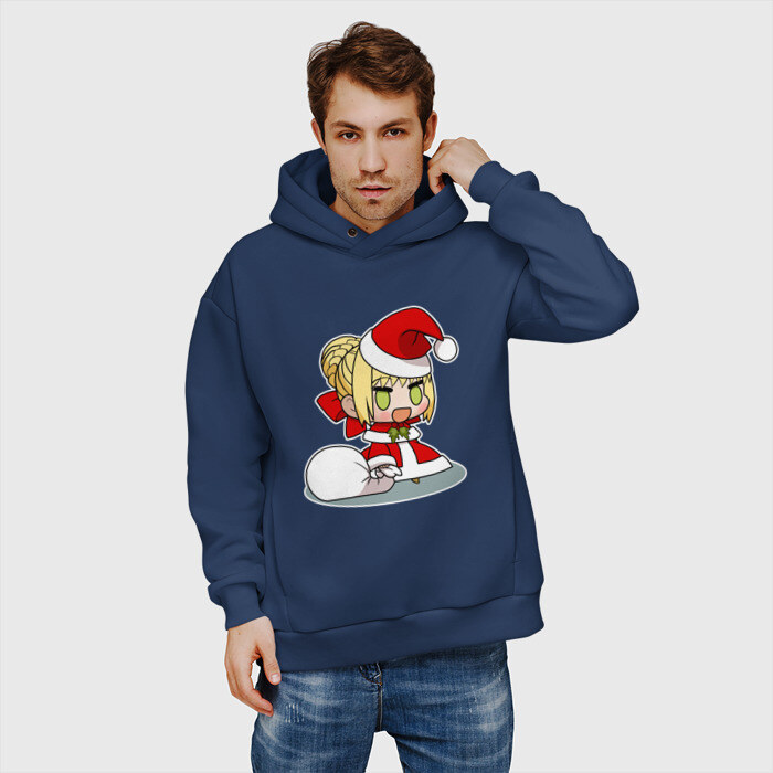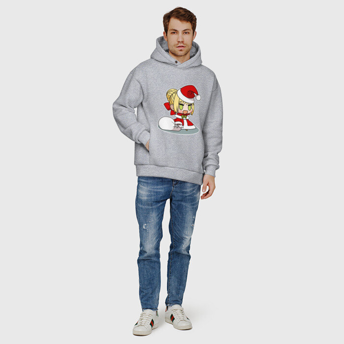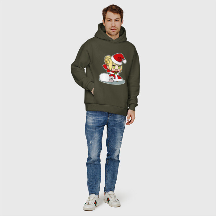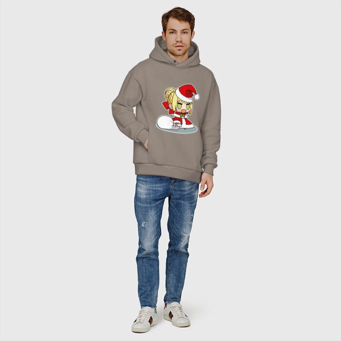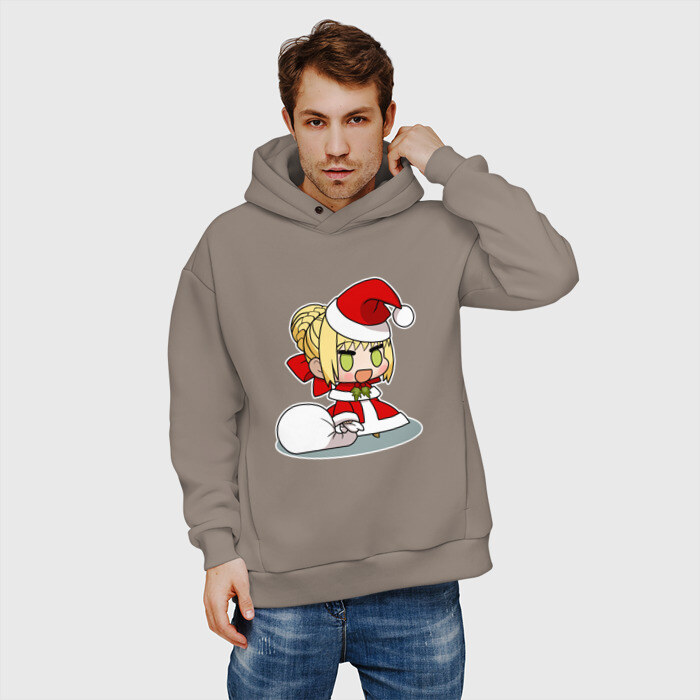 Мужское худи Oversize хлопок с принтом Padoru Padoru мем