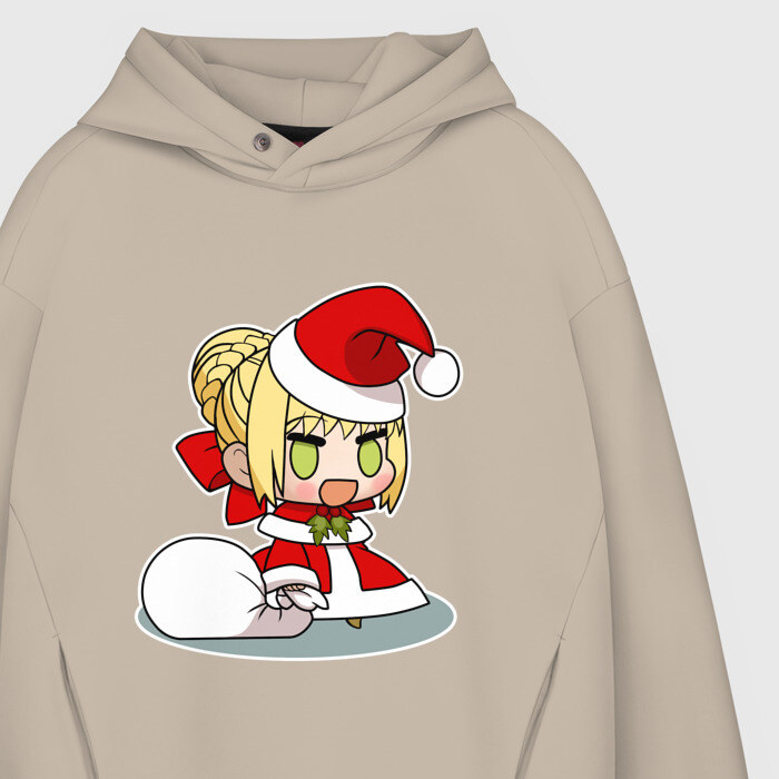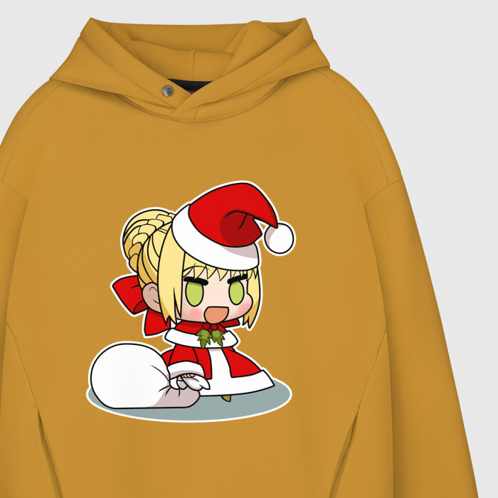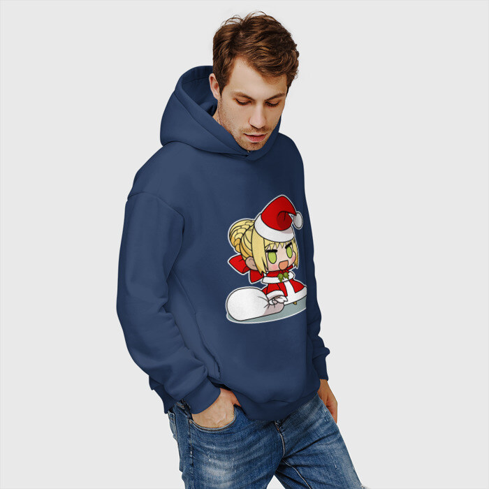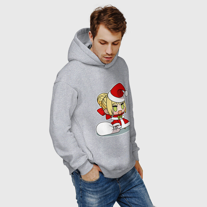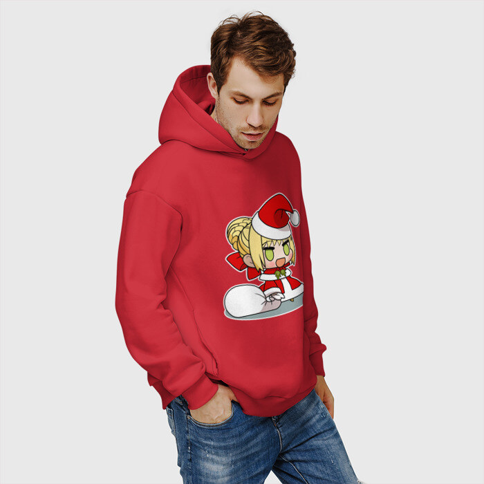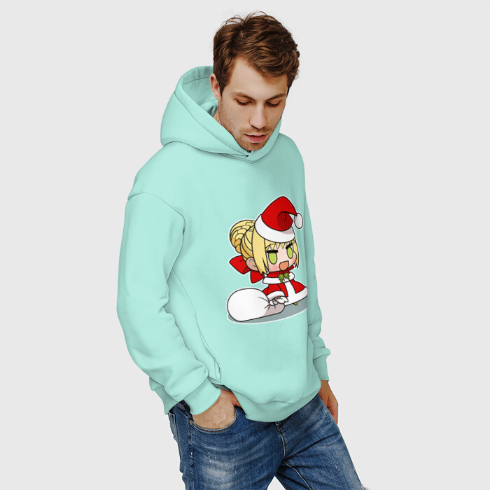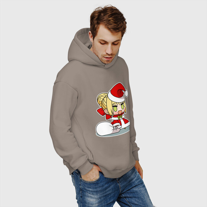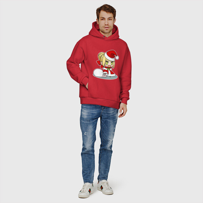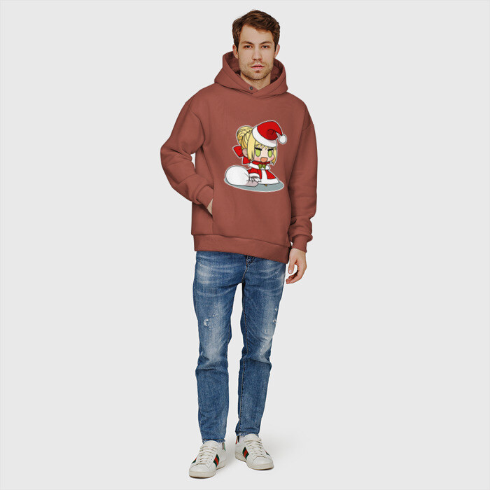 Мужское худи Oversize хлопок с принтом Padoru Padoru мем