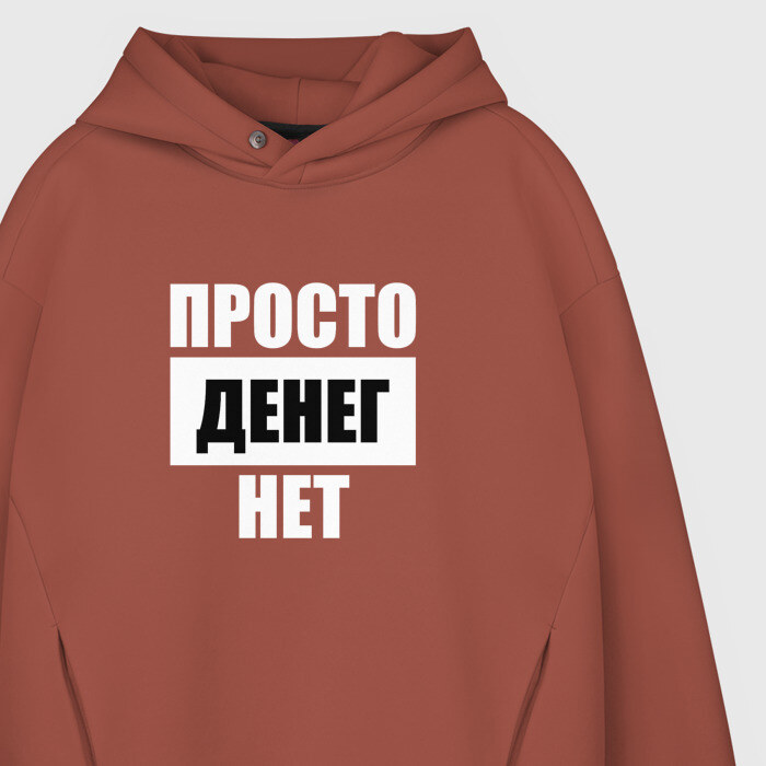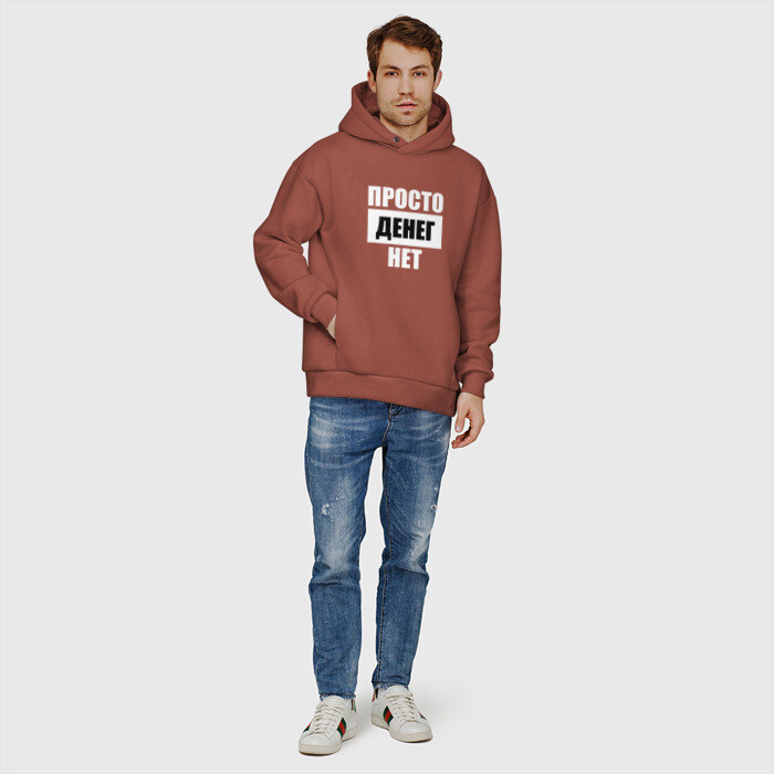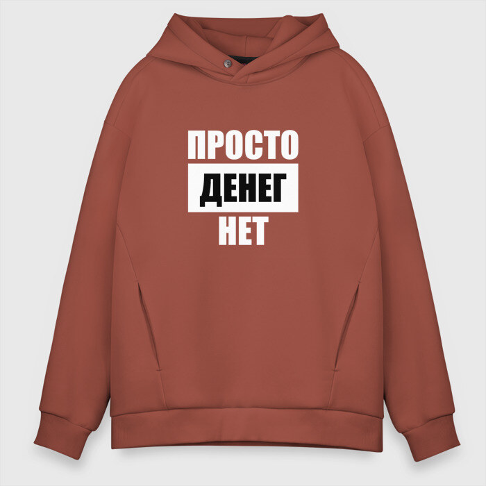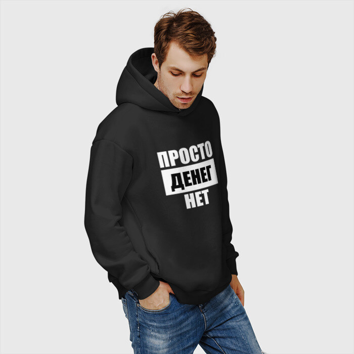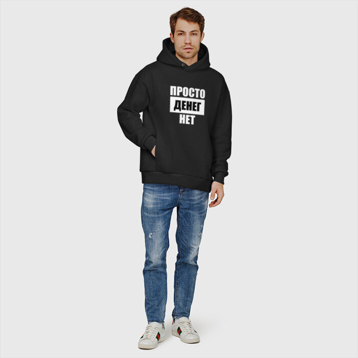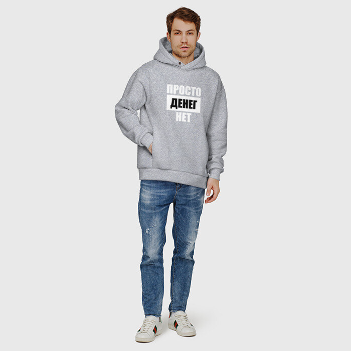 Мужское худи Oversize хлопок с принтом Просто денег нет