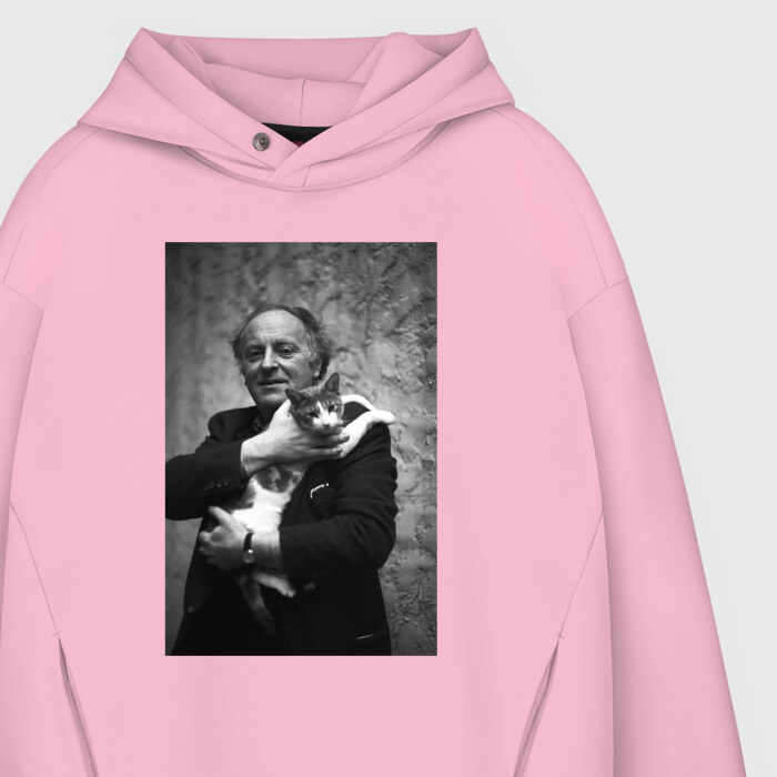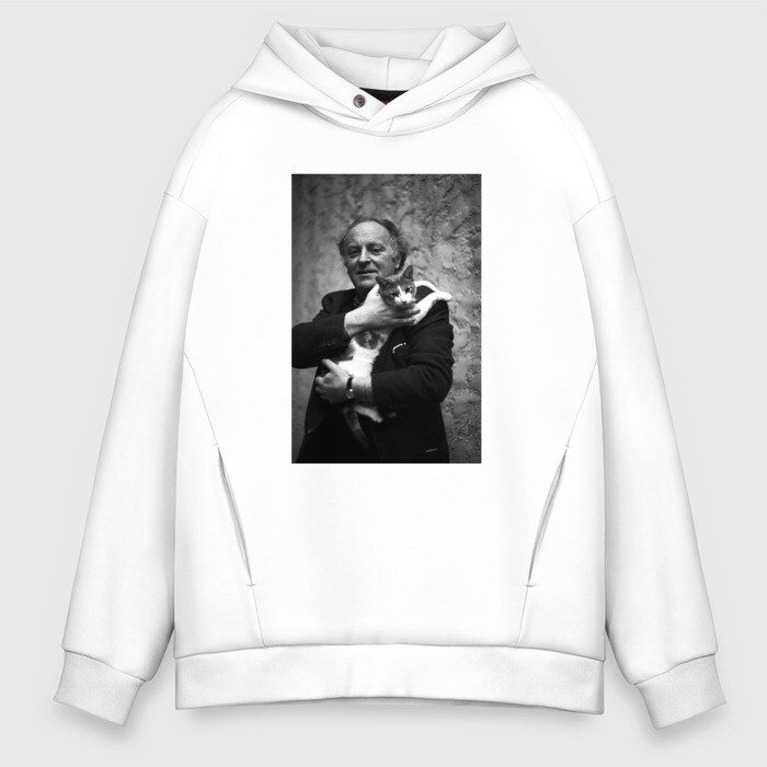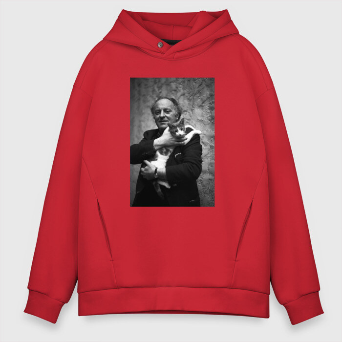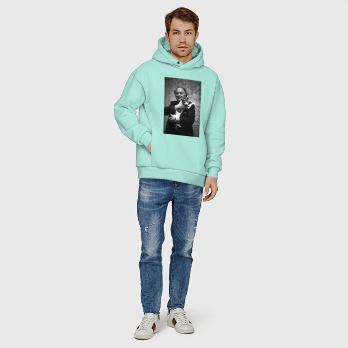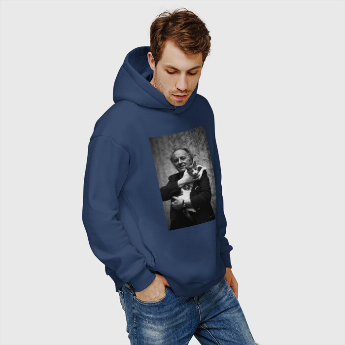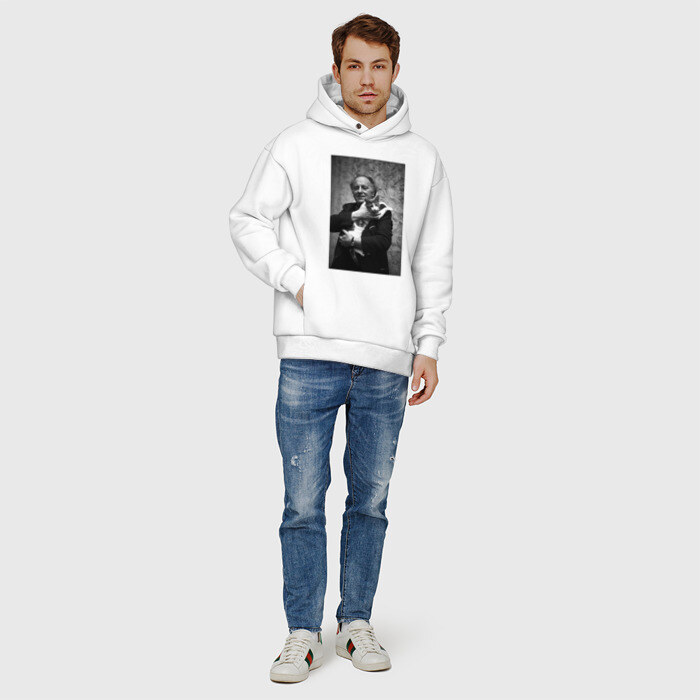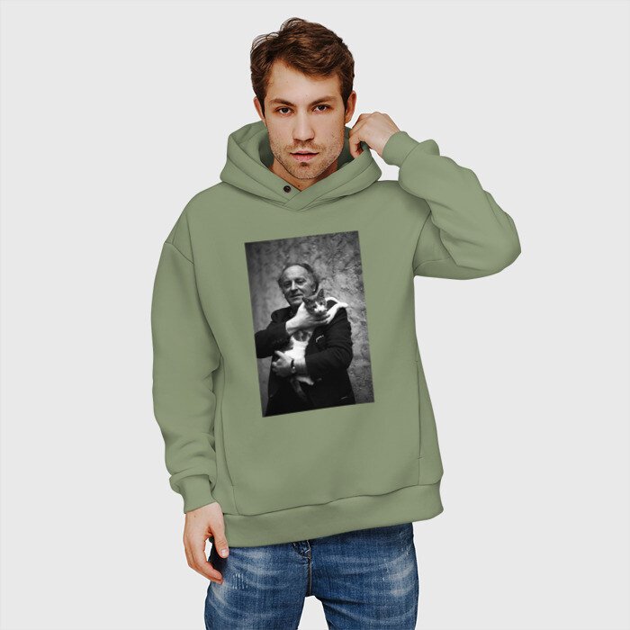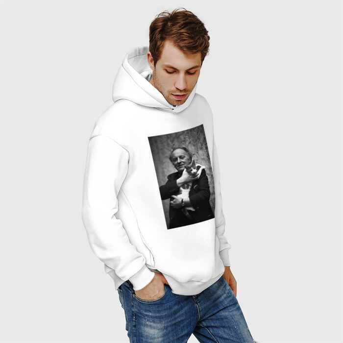 Мужское худи Oversize хлопок с принтом Бродский и кот