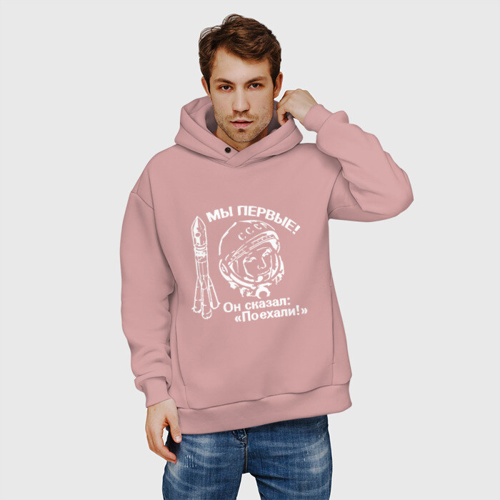 Мужские худи Oversize хлопок ЮРИЙ ГАГАРИН - ПОЕХАЛИ!