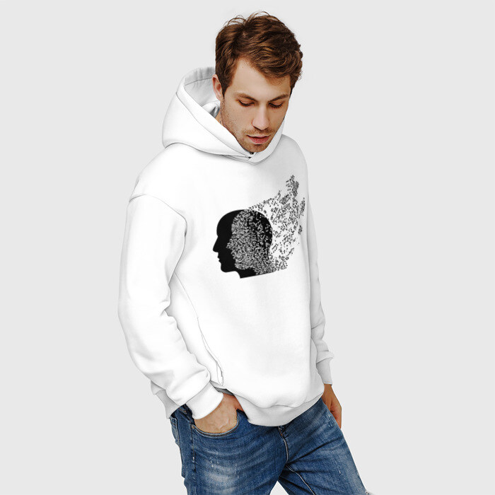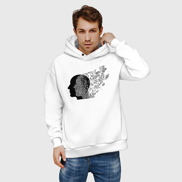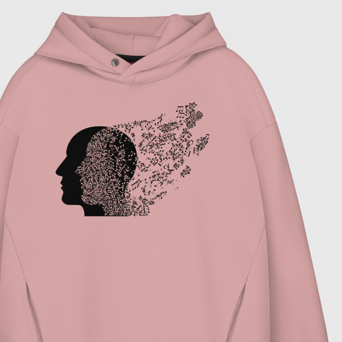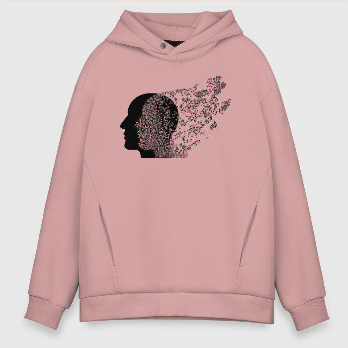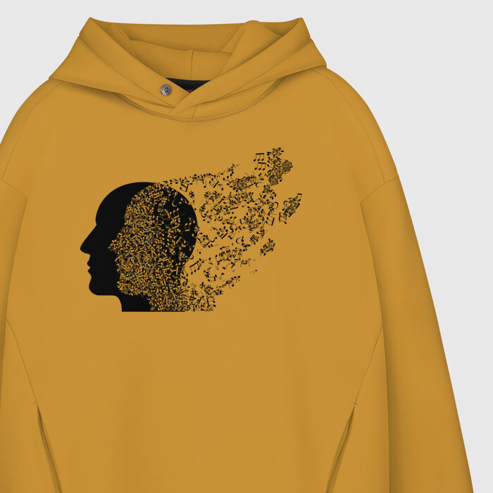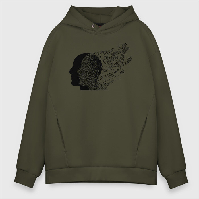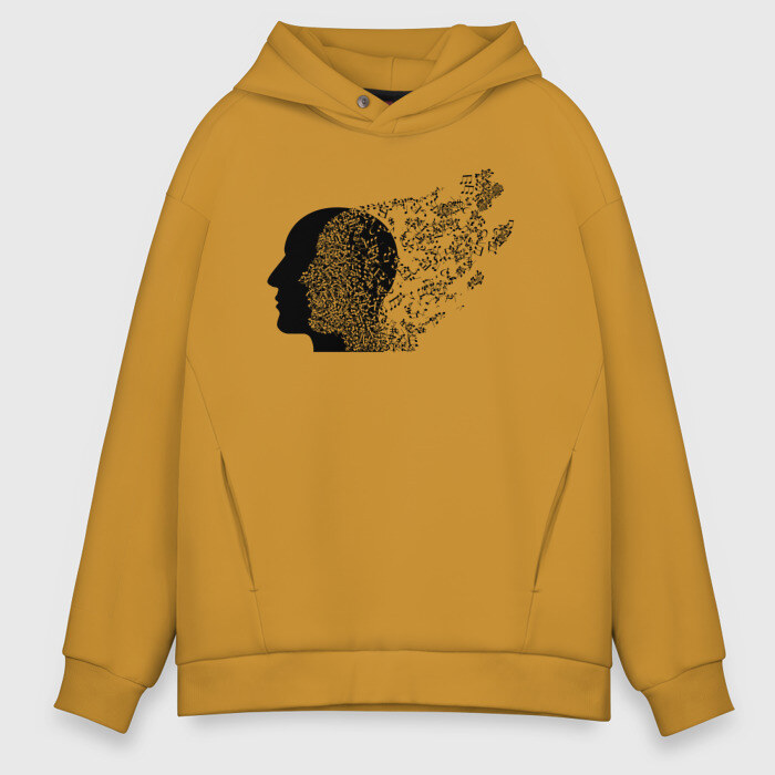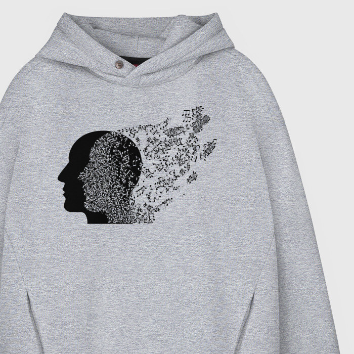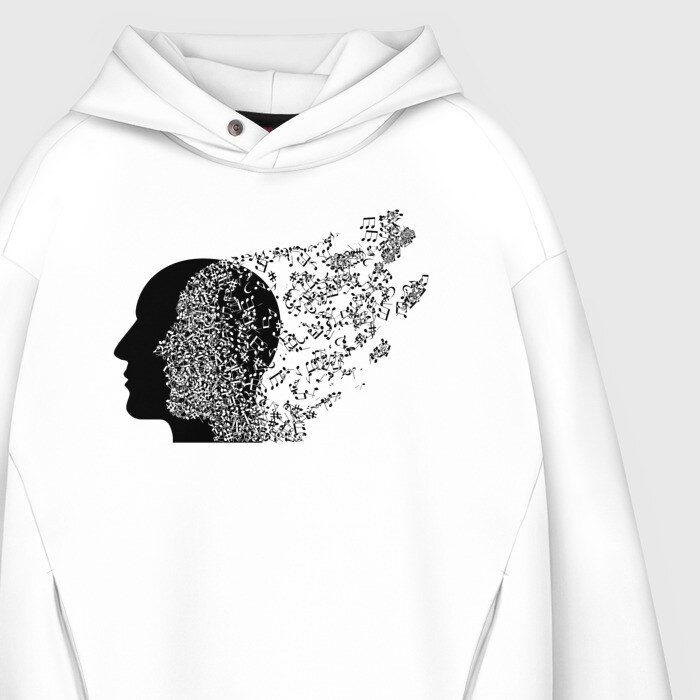 Мужское худи Oversize хлопок с принтом Голова с нотами