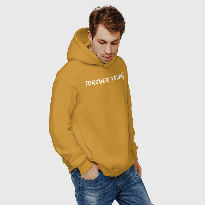 Мужские худи Oversize хлопок НАДПИСЬ FOREVER YOUNG