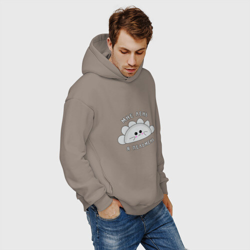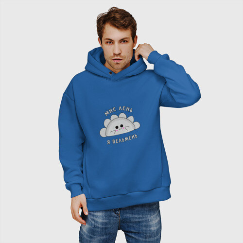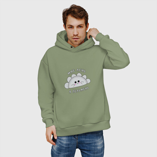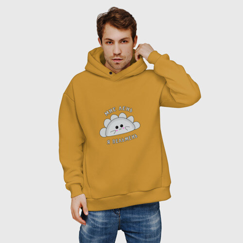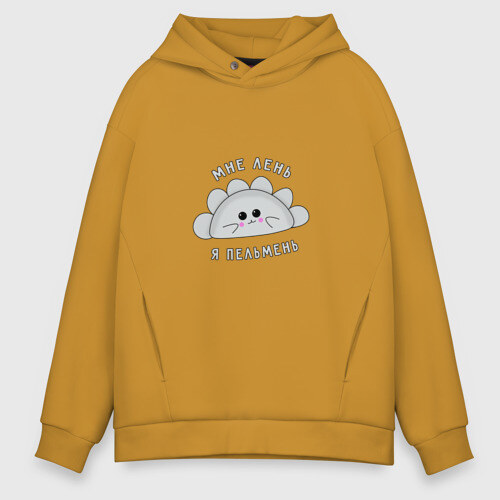 Мужские худи Oversize хлопок МНЕ ЛЕНЬ, Я - ПЕЛЬМЕНЬ.
