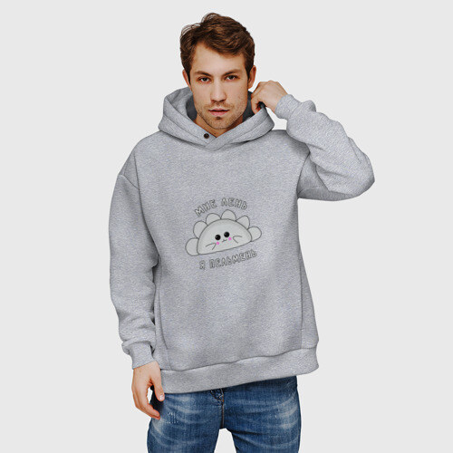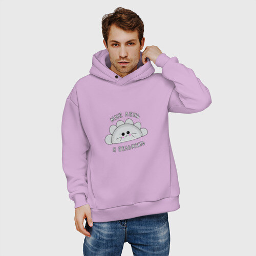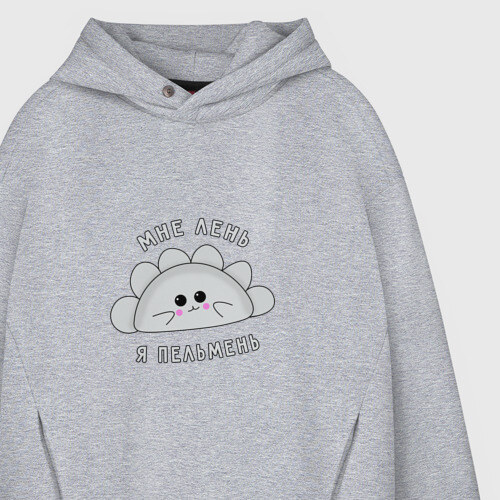 Мужское худи Oversize хлопок с принтом Мне лень, я - пельмень.