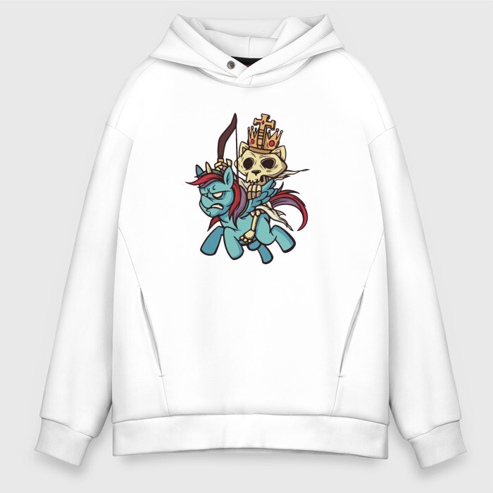 Мужское худи Oversize хлопок с принтом Кот апокалипсиса на пони