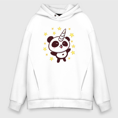 Мужское худи Oversize хлопок с принтом Пандочка единорог