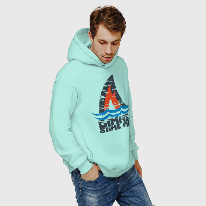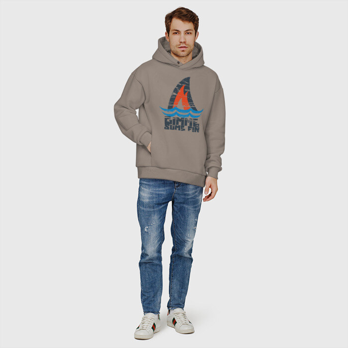 Мужское худи Oversize хлопок с принтом Gimme Some Fin