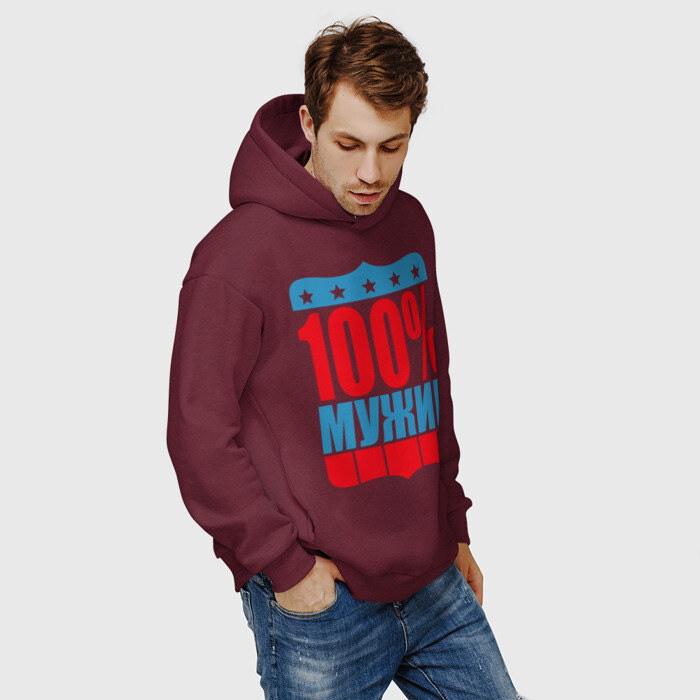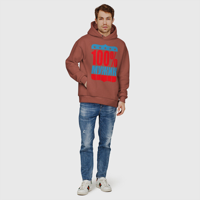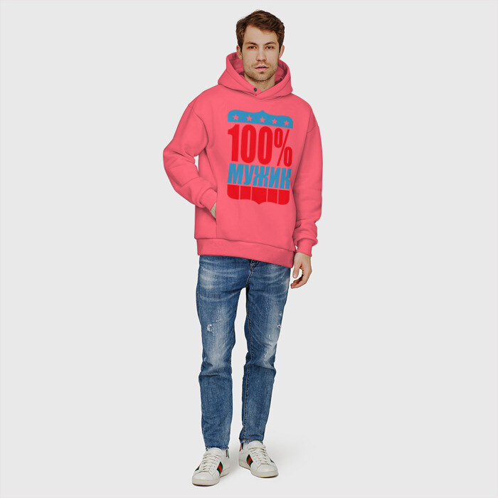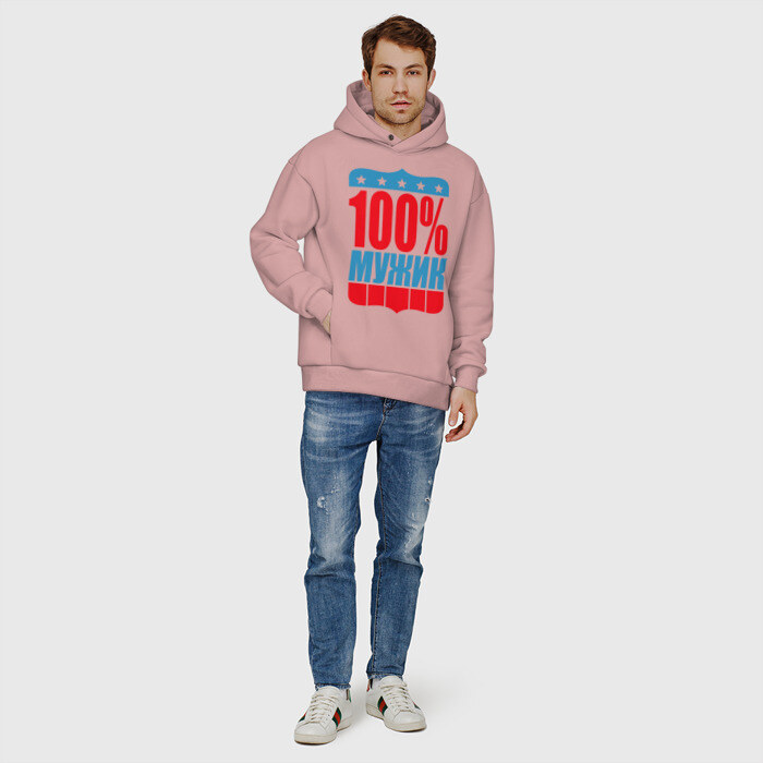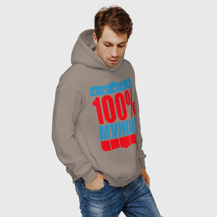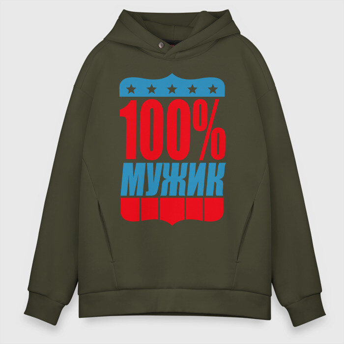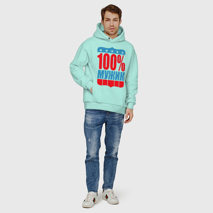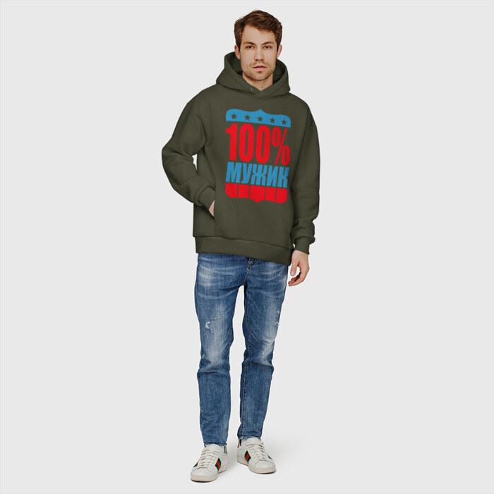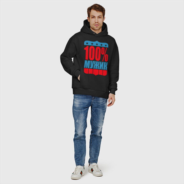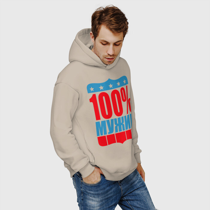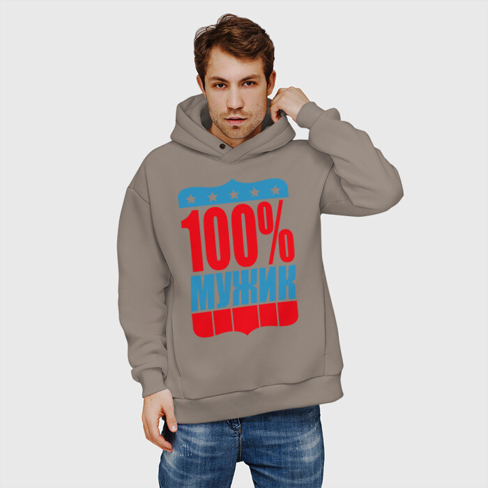 Мужское худи Oversize хлопок с принтом 100% мужик