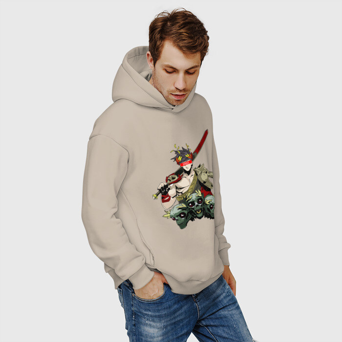Мужское худи Oversize хлопок с принтом HADES ЗАГРЕЙ