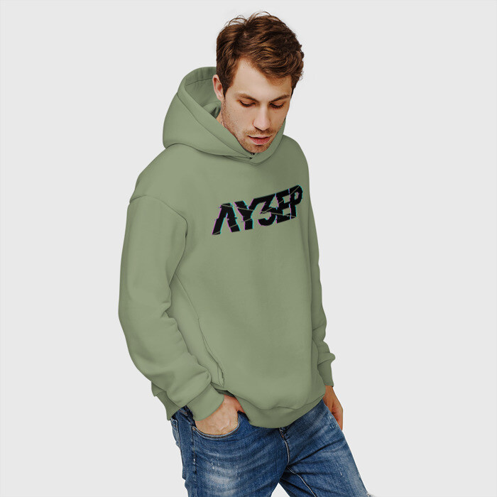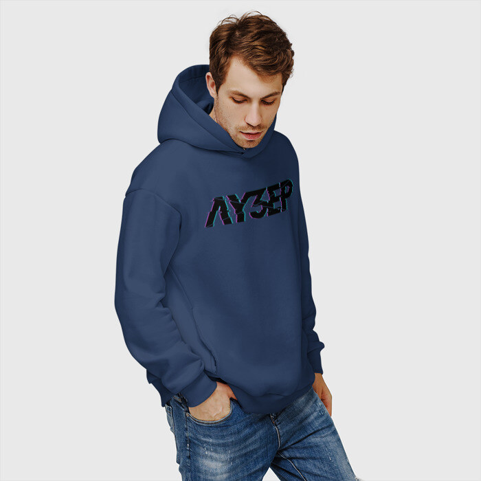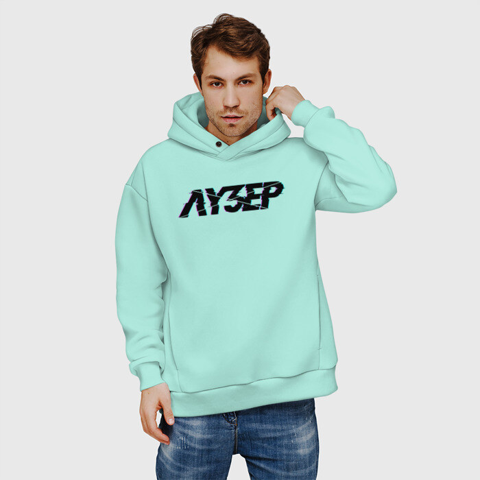 Мужское худи Oversize хлопок с принтом ЛУЗЕР